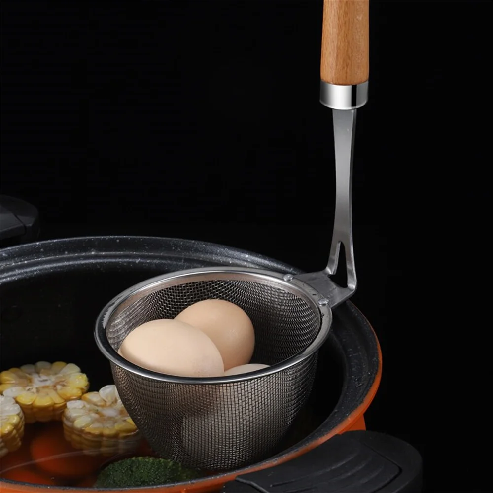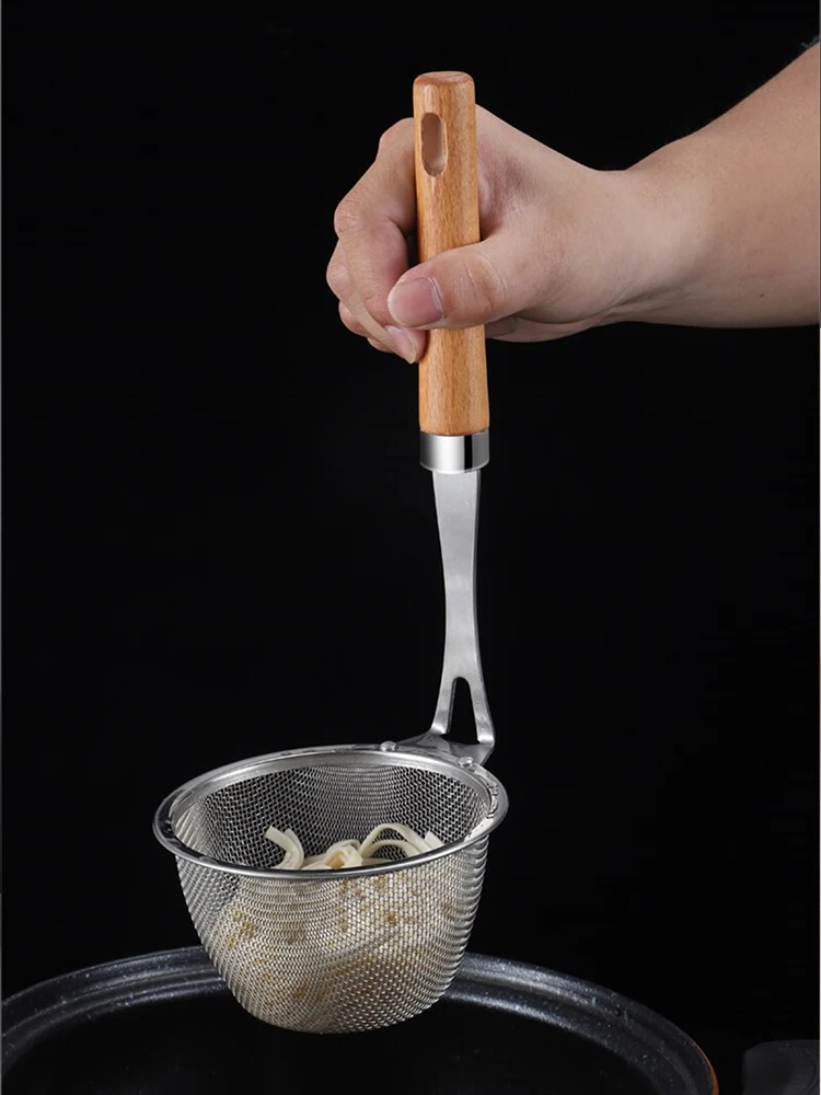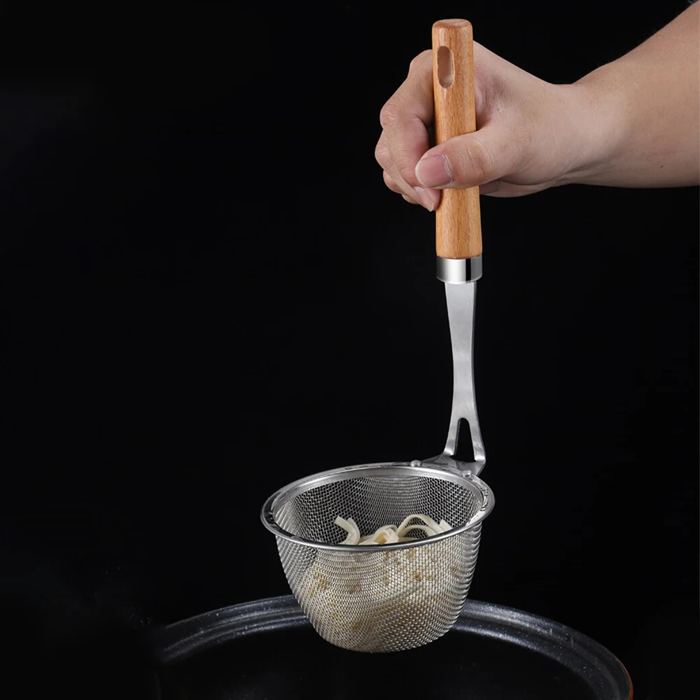 1~8PCS Stainless Steel Filter Spoon, Wooden Handle Hot Pot Colander, Kitchen Utensils