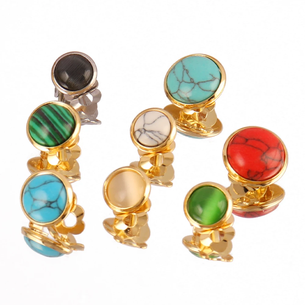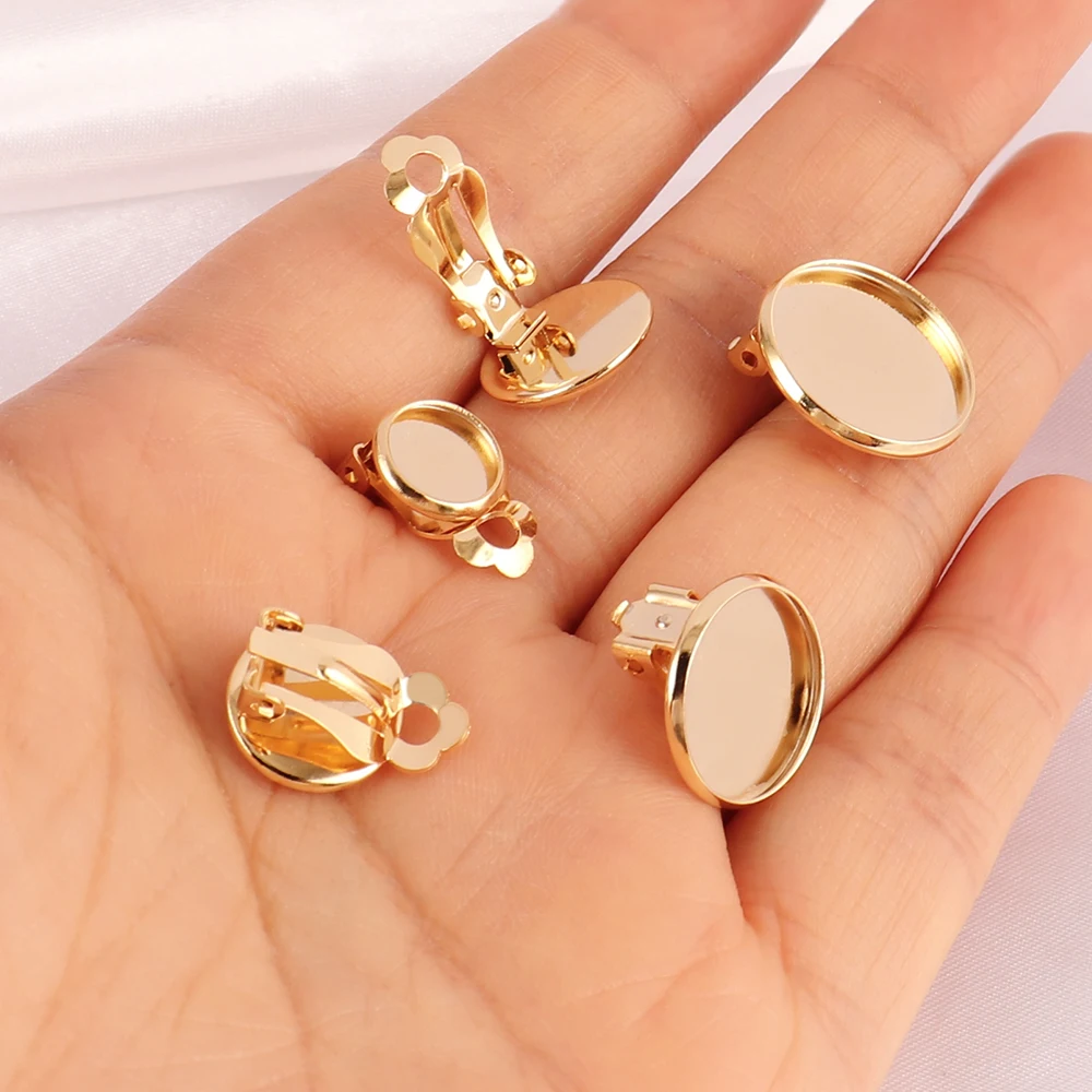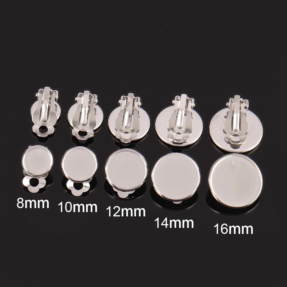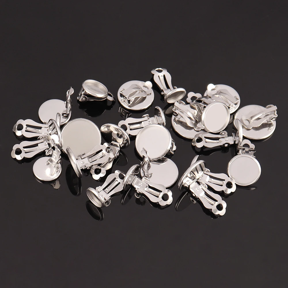 10pcs Stainless Steel Clip Earrings Blank Base Cabochon Cameo Ear Clip With Trays Bezels Setting for DIY Jewelry Making Supplies