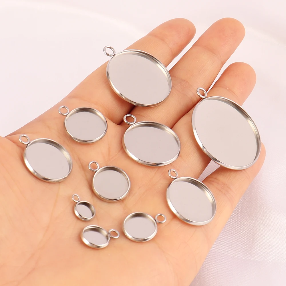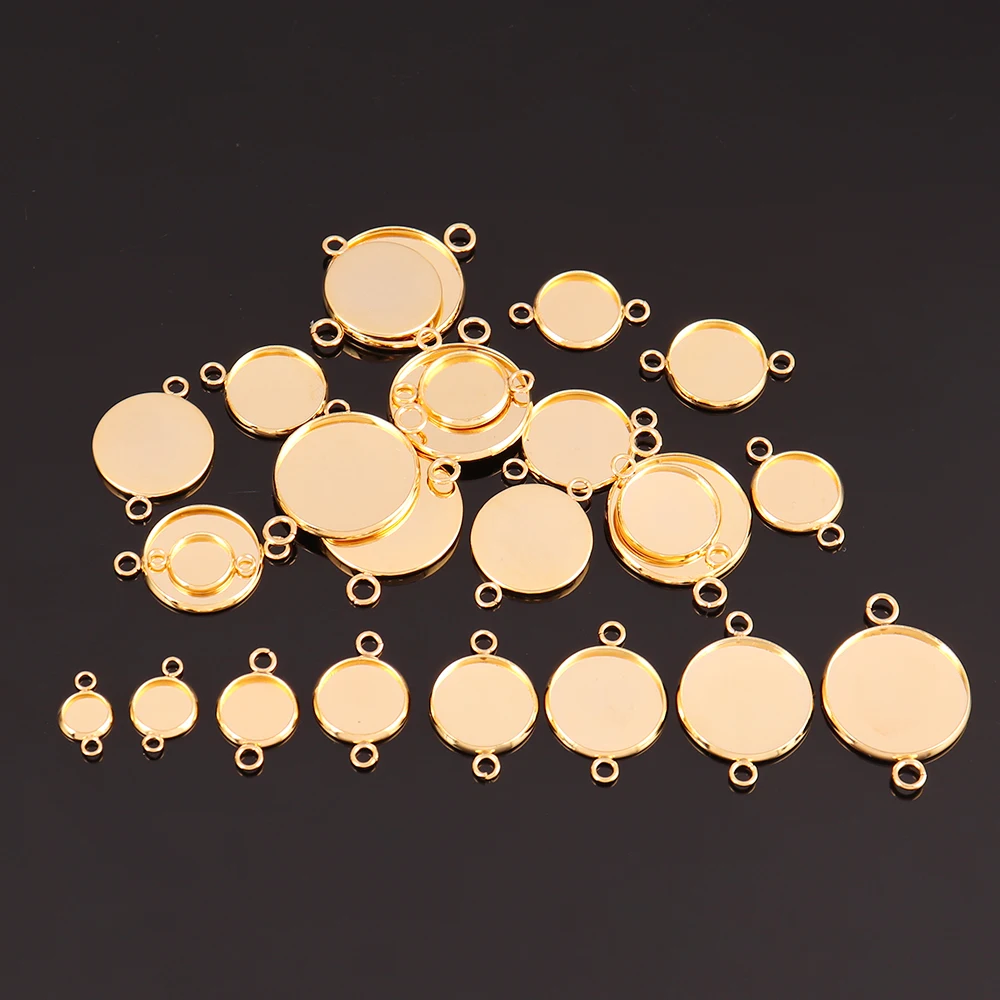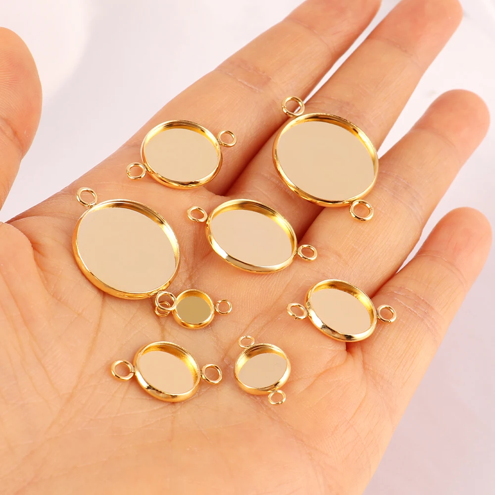 10pcs Stainless Steel Resin Blank Cabochon Cameo Base Tray Setting Bezels Blank Double Holes Charm for Jewelry Making Findings