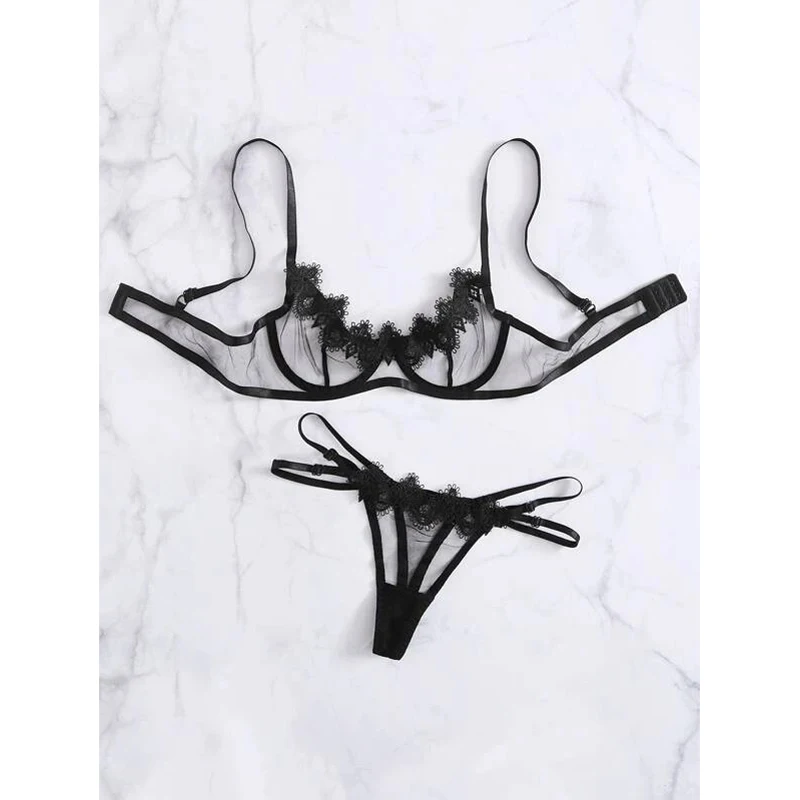 2Pcs/Set Sexy Lace Hollow Bra Panty Set Women Intimates G-String & Lingerie Sets Transparent Bralette Set Erotic Underwear S-XL