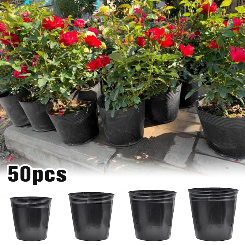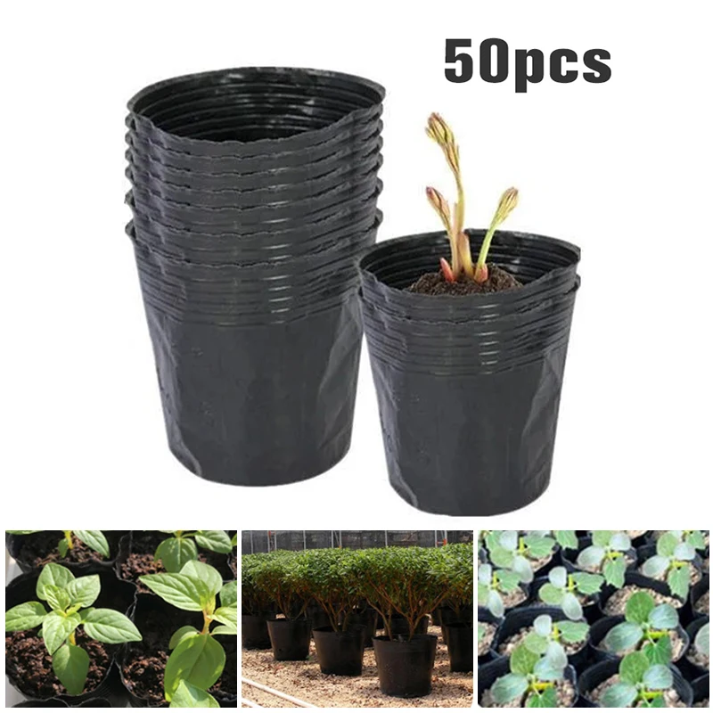 50pcs Black Soft Plastic Nursery Pot Seedling Planting Bowl Breathable Nutrition Plants Cup Flower Vegetable Garden Grow Bags