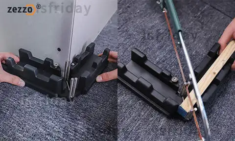 The Zezzo® tool's utility extends beyond the realm of baseboards. Its ability for accurate measurement combined with the precise sawing mechanism makes it a valuable asset in various woodworking and construction endeavors. This dual function makes it suitable for tasks such as cornering in skirtings, recesses, pipeline installation, home improvement, cabinetry projects, or any other scenario requiring angled cuts. Furthermore, its portability makes it easily transportable to different workspaces, ensuring that its precision is available wherever it's needed. For thinner materials, the product is best used in conjunction with the designated stabilizing wedges.