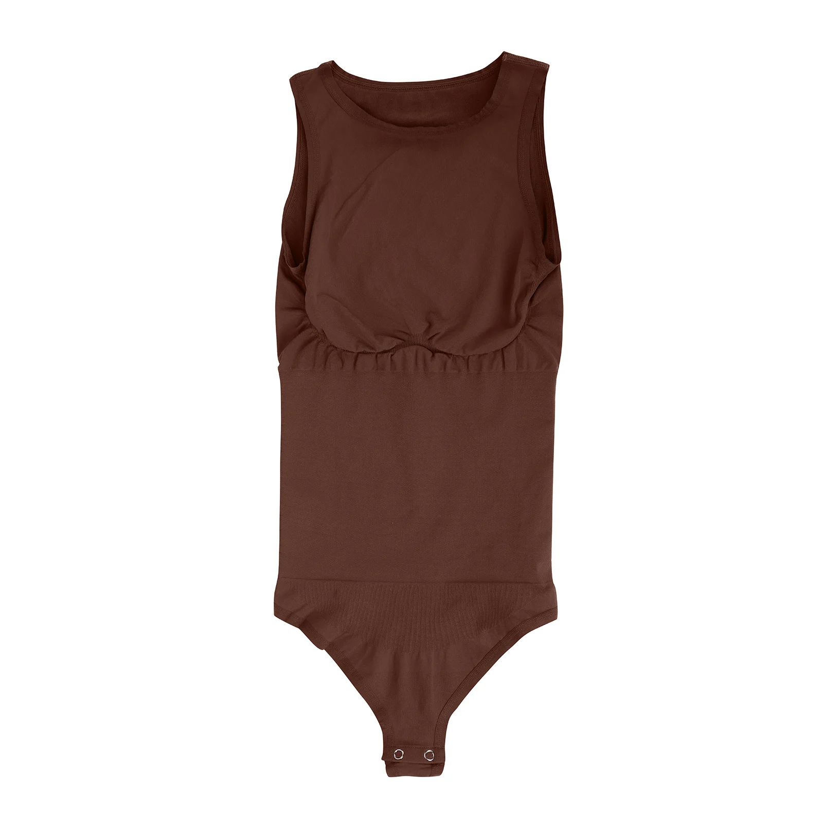 Body-Hugging T-shirt Bodysuit Tops for Women Soft Crew Neck Body Shaper Thong Jumpsuit Flat Belly Corset Sexy Thong Shapewear