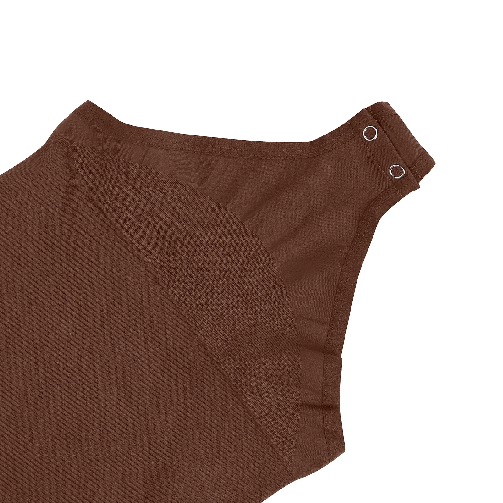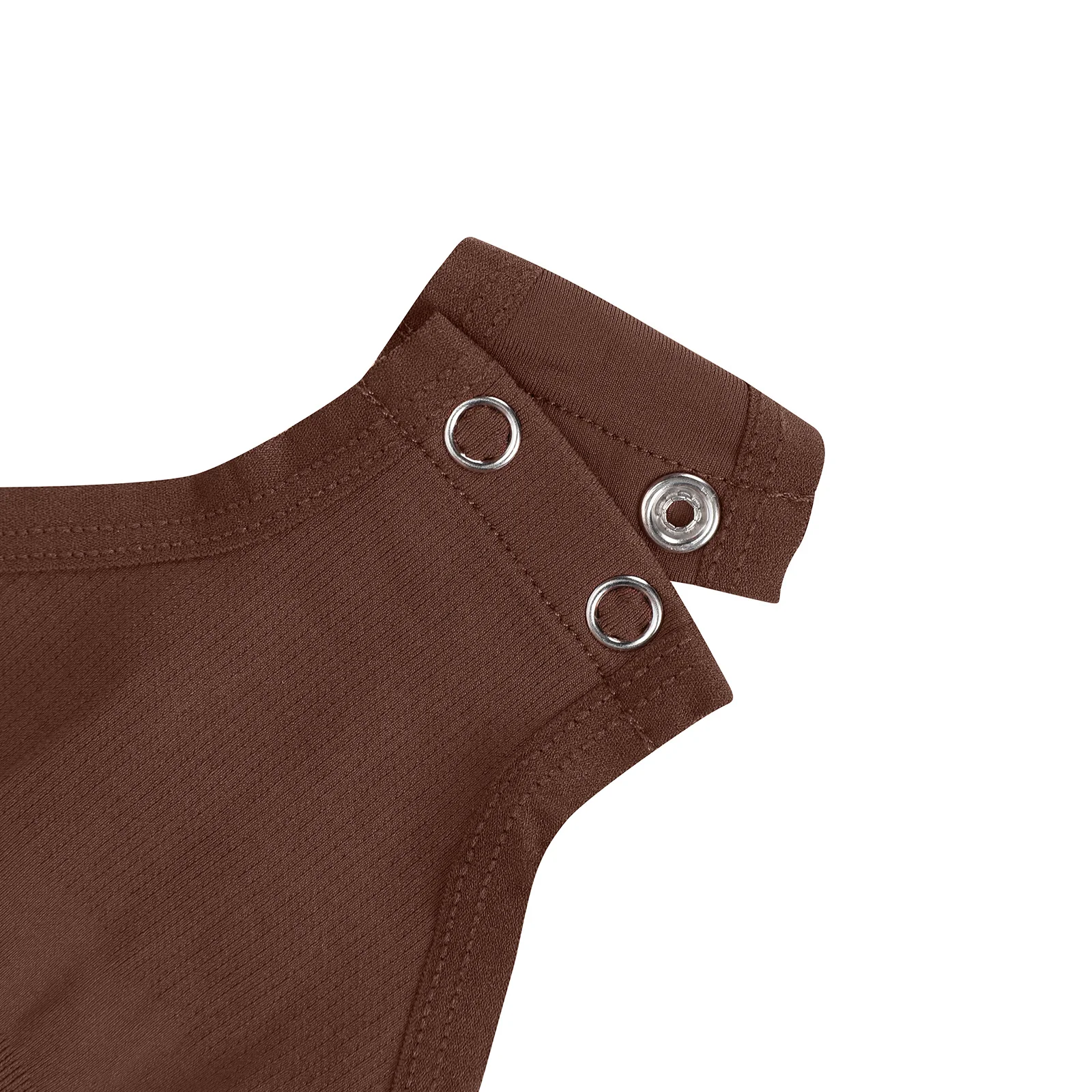The bodysuit's design also emphasizes a refined posterior aesthetic. The T-shaped construction of the buttocks area delicately accentuates and shapes the curvature of the hips, providing an enhanced and pleasing silhouette. The practical design feature of snap buttons in the crotch area allows for effortless restroom access, thereby increasing user convenience while minimizing the risk of unwanted shifting or disruption throughout wear.