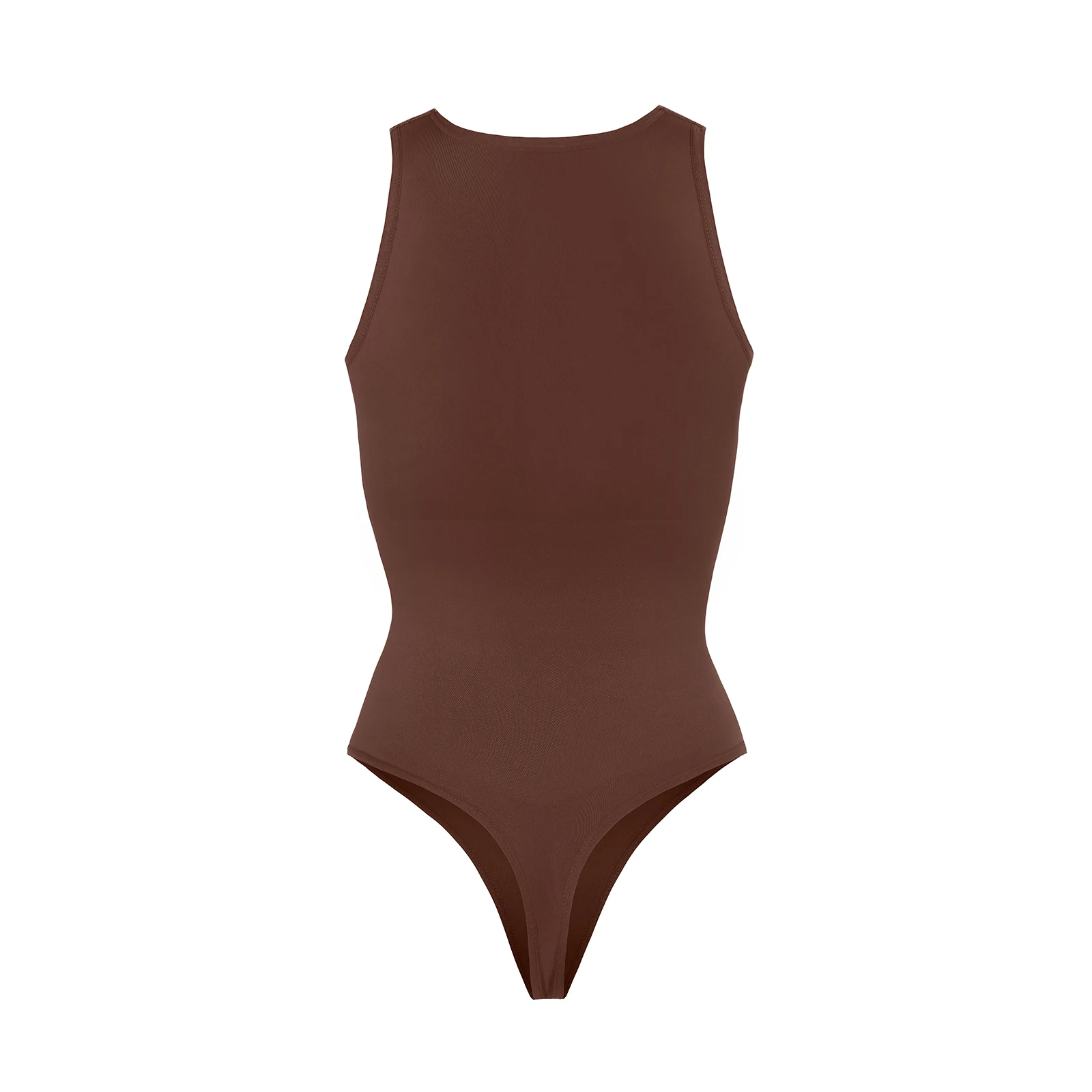 Further enhancing its practicality, the bodysuit incorporates targeted abdominal control. The high-elastic fabric in the abdominal region effectively sculpts the midsection, contributing to a more streamlined silhouette. This feature proves beneficial for those seeking a flattering figure-accentuating effect. Subtle but notable breast support is achieved through the tighter fabric construction below the bust, creating a flattering and supportive fit.