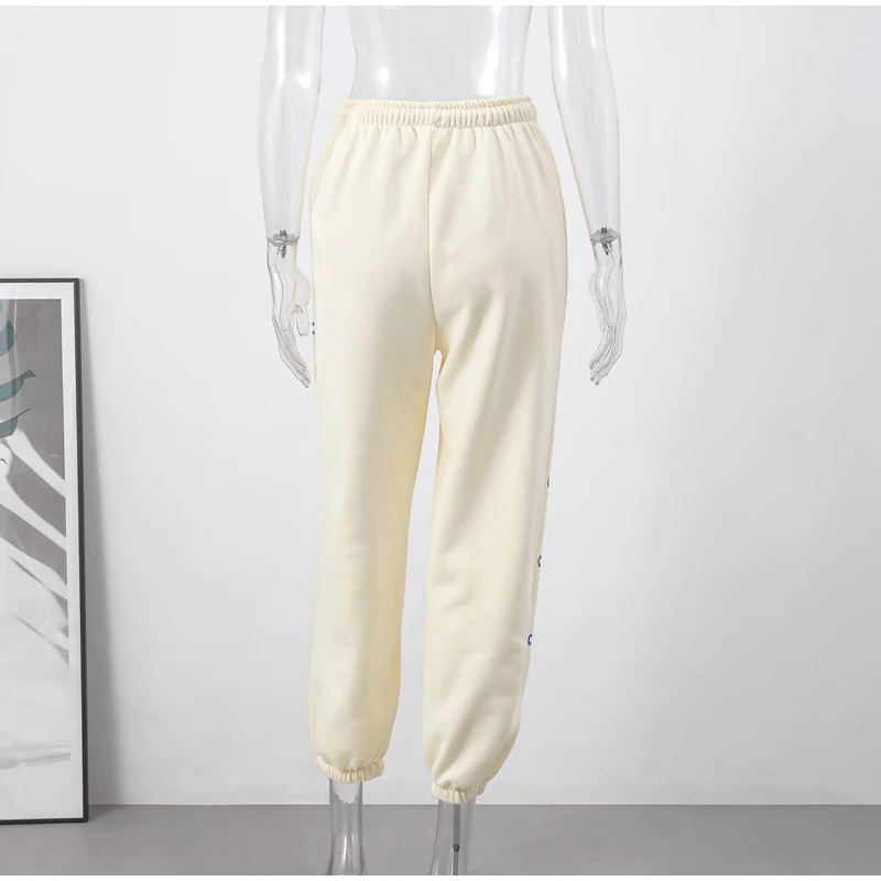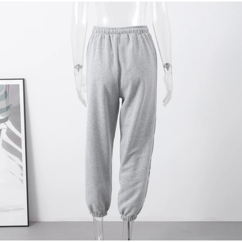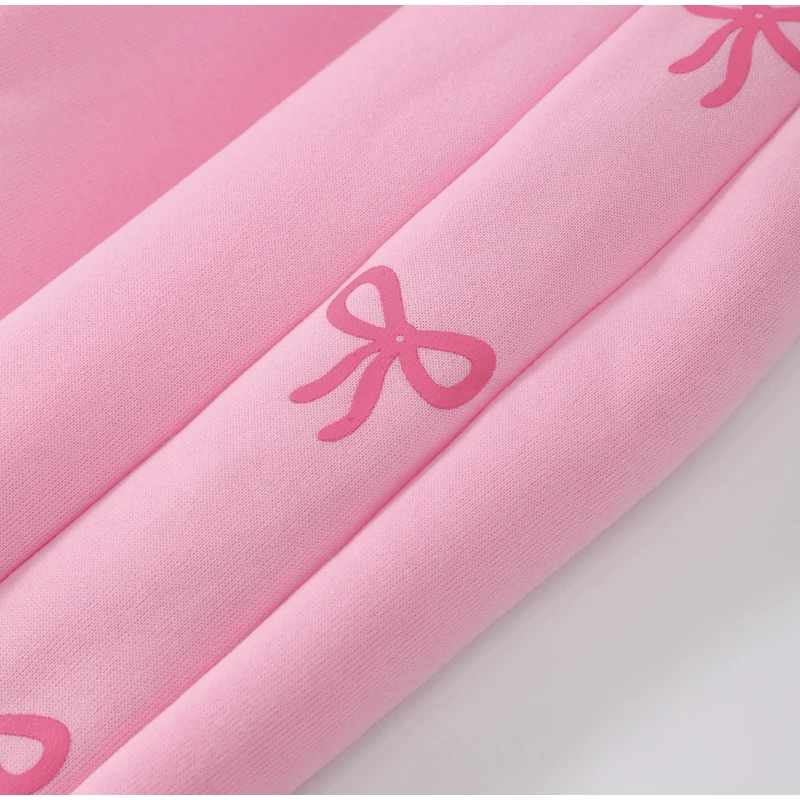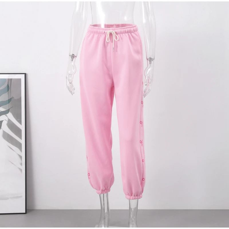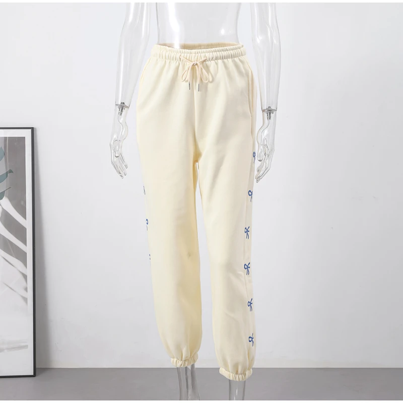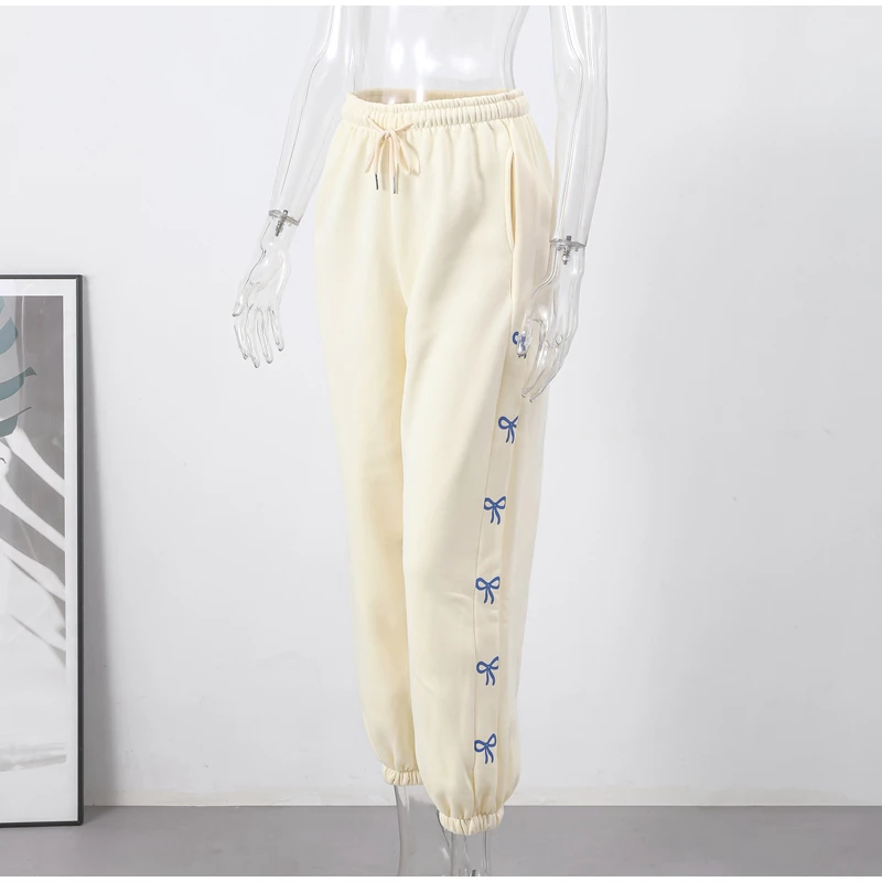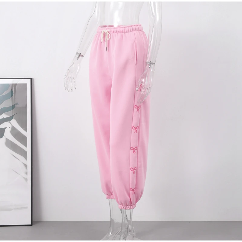Bow Print Plus Velvet Sweatpants Women Elastic Waist Loose Pockets Warm Casual Trousers Female Winter Autumn Soft Lady Joggers