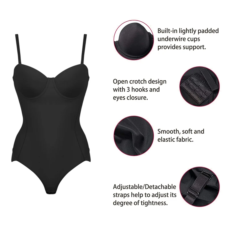Our Shapewear bodysuit Built-in bra with lightly padded underwire cups provides extra coverage and support to better support the chest, gather the breast, and prevent the chest from drooping,giving enough supports in case the breasts being dispersed