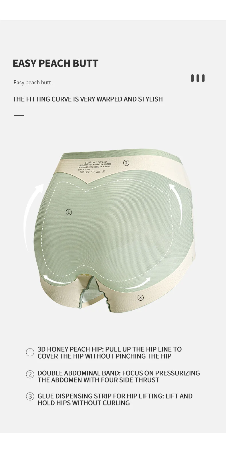 Buttock Enhancement: The design also includes features designed to lift and reshape the buttocks. Resting on the hands, the product is designed to lift and contour the buttocks to create a more rounded and enhanced shape. This technique is meant to enhance body image.