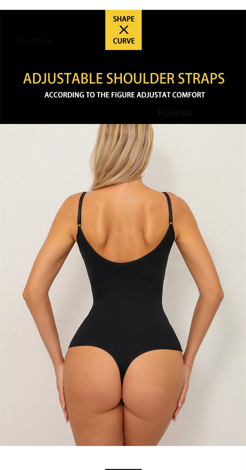 Flarixa Plus Size Bodysuit Women Slimming Underwear Open Crotch Shapewear Seamless Thong Jumpsuit Postpartum Body Shaper S-XXXL