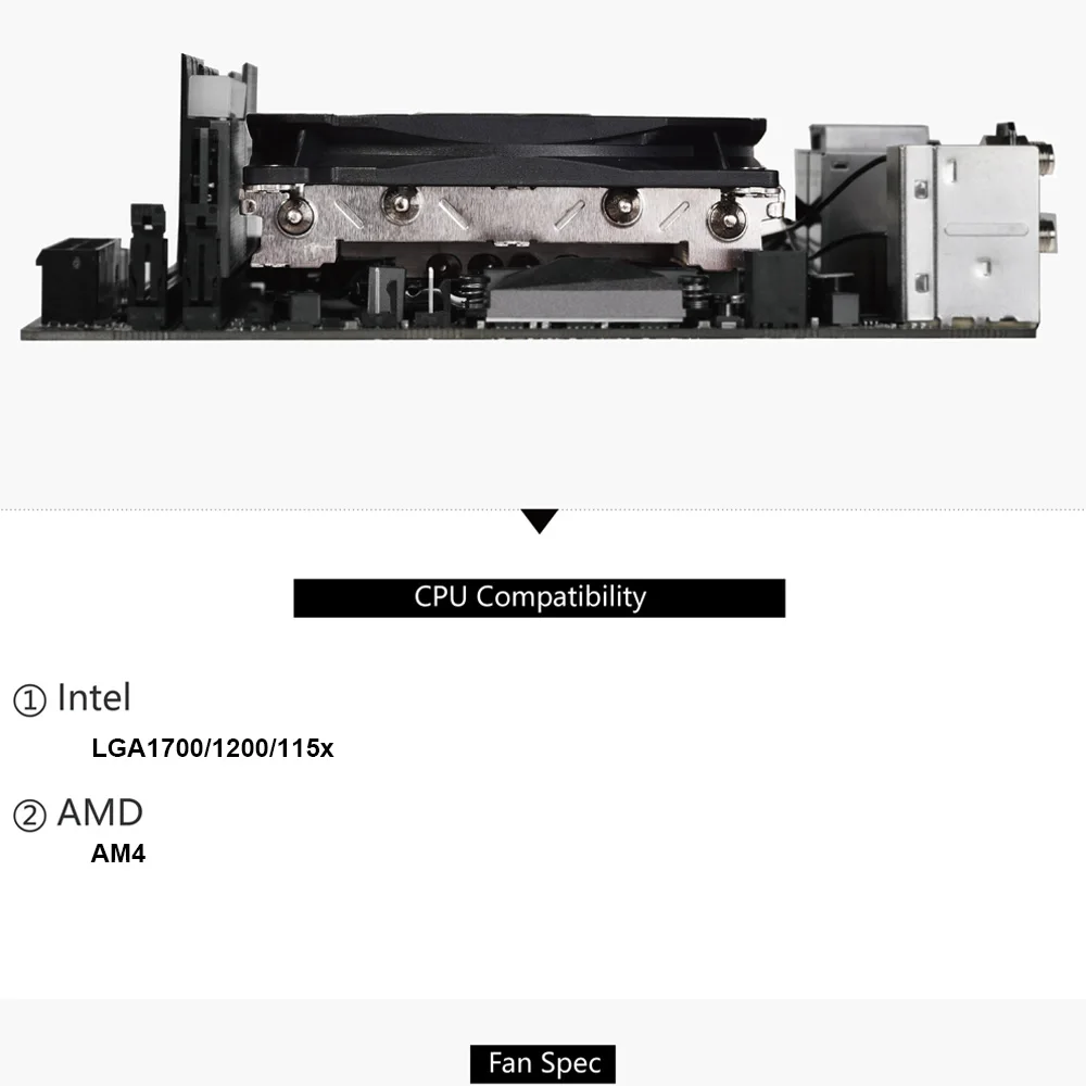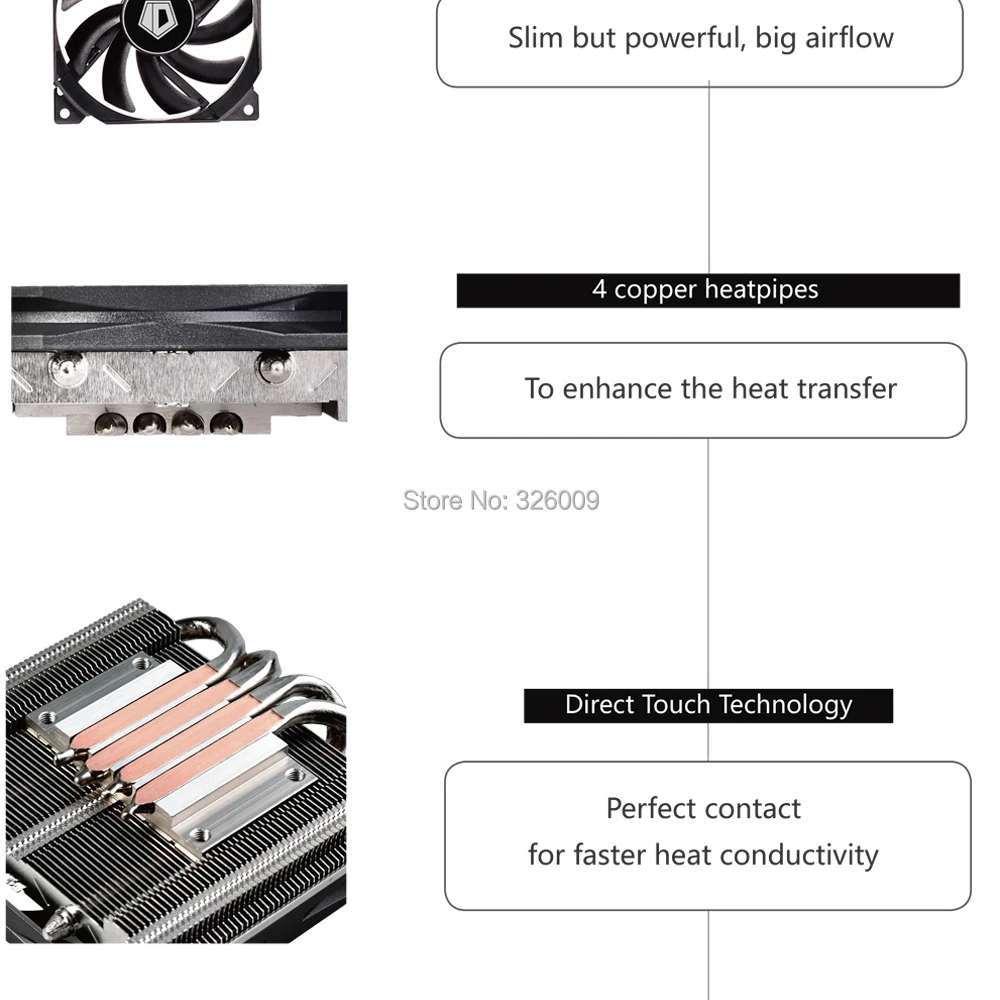 ID-Cooling IS-30 Low Profile 30mm Height Super Slim CPU Radiator LGA1700 1200 AM4 4 Heatpipe 9cm Cooling Fan 1U For A4 Chassis