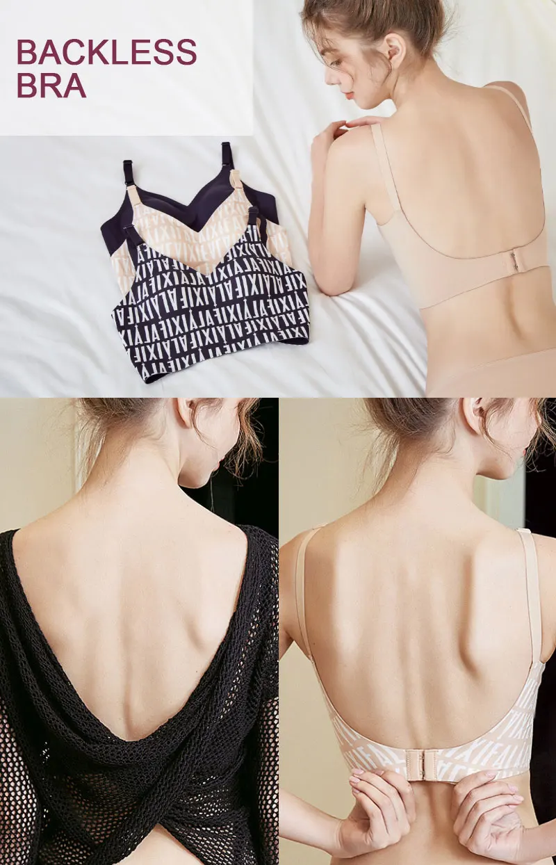 Low Back Bra Top Women Seamless Bralette Deep U Bras Backless Brassiere Large Size Underwear Wireless Sleepwear Lingerie M-6XL