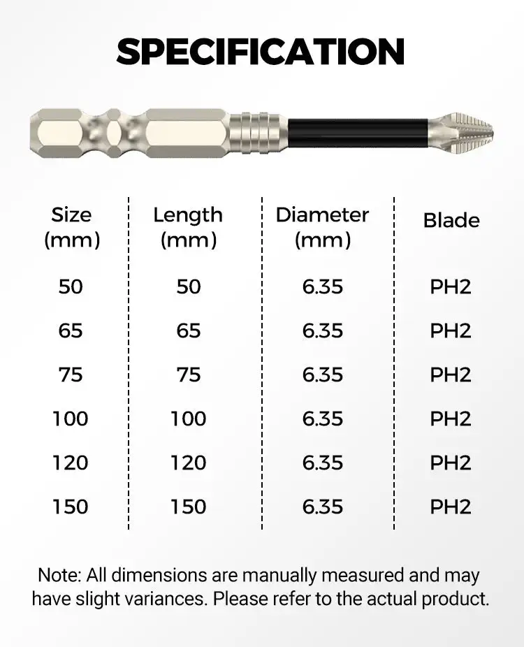 - 【Electric Precision】Includes six different sizes (25, 50, 65, 70, 90, 150mm) to accommodate a wide range of screws, making it suitable for electronics, furniture assembly, and more