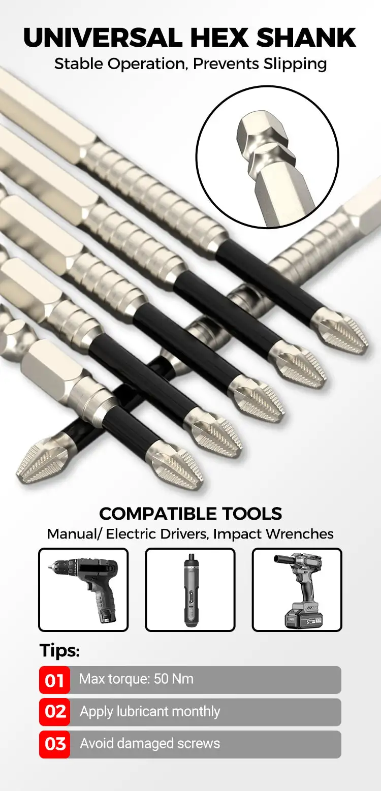 - 【High-Magnetic Screwdriver Drill Bit】Features a robust magnetic design that securely holds screws in place, eliminating frustration and enhancing efficiency during tasks