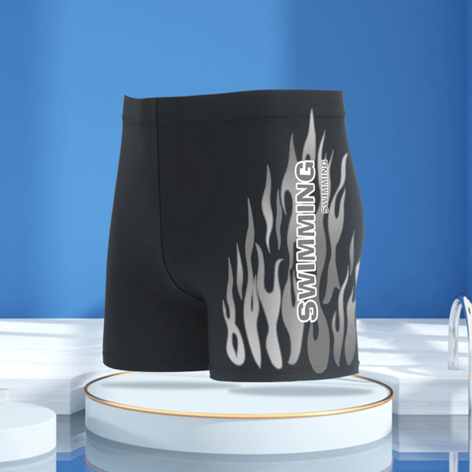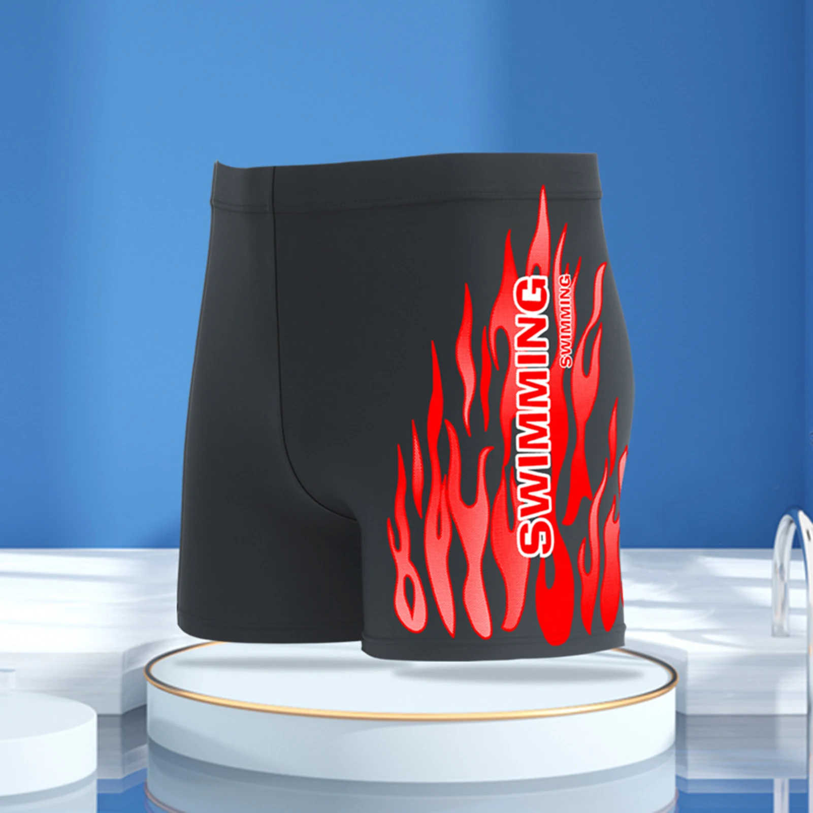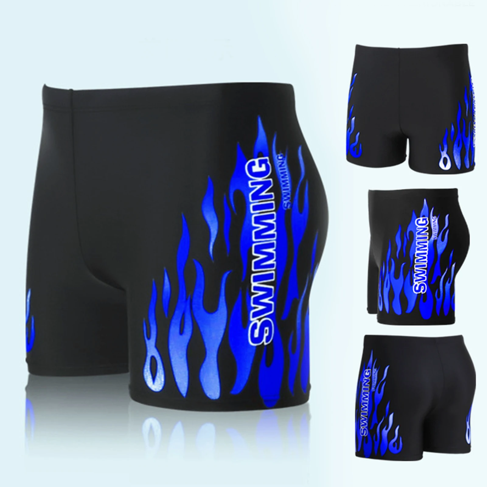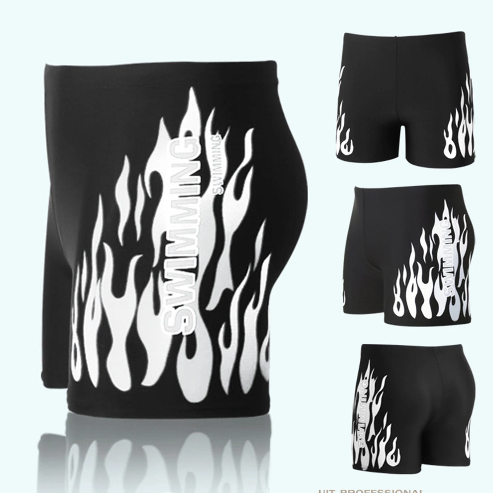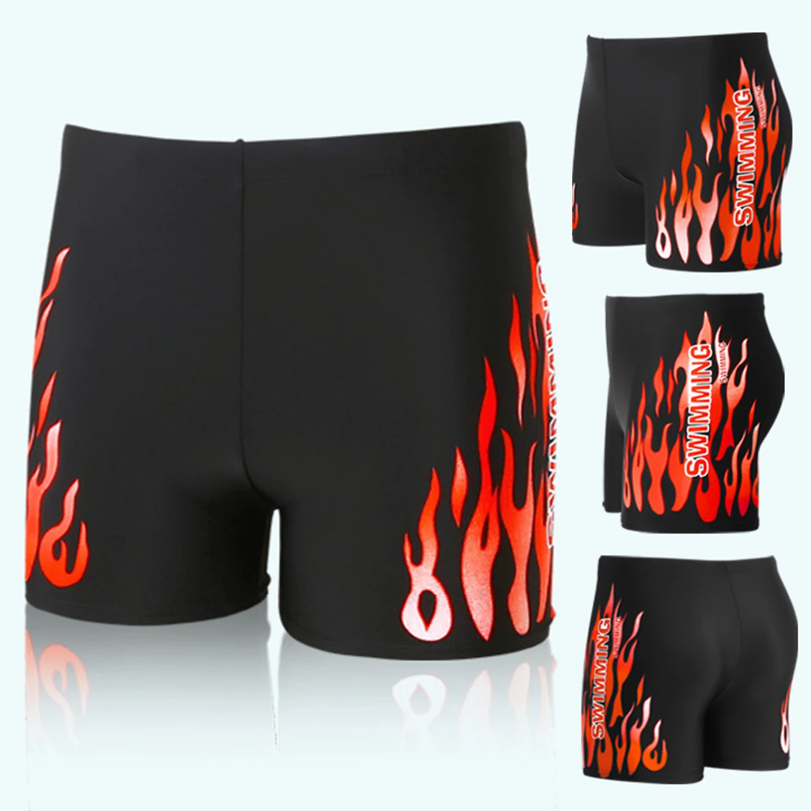 Men Swimming Trunks Trendy Plus Size Elastic Waistband Men Flame Print Swim Shorts Swimwear Swimming Trunks Swim Shorts
