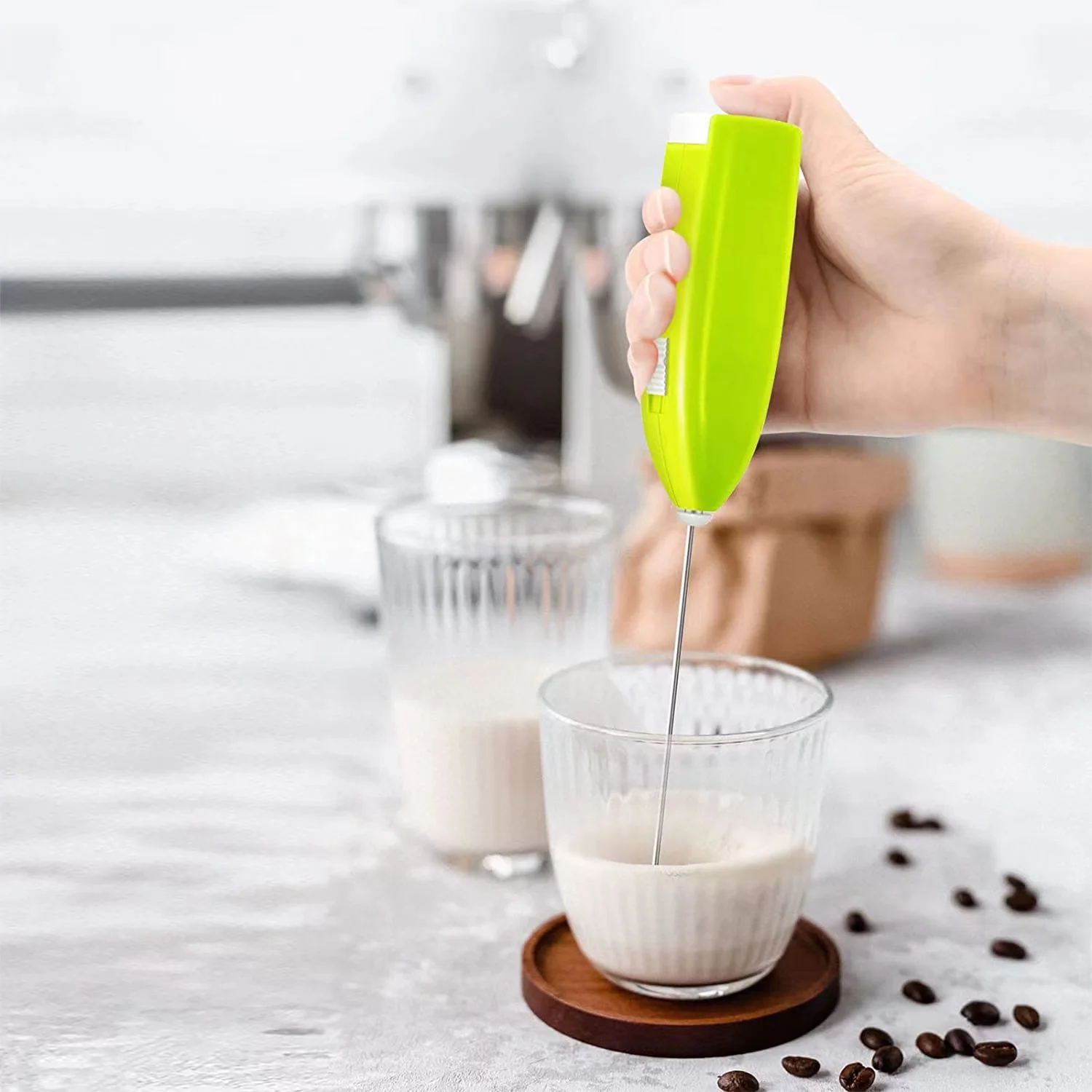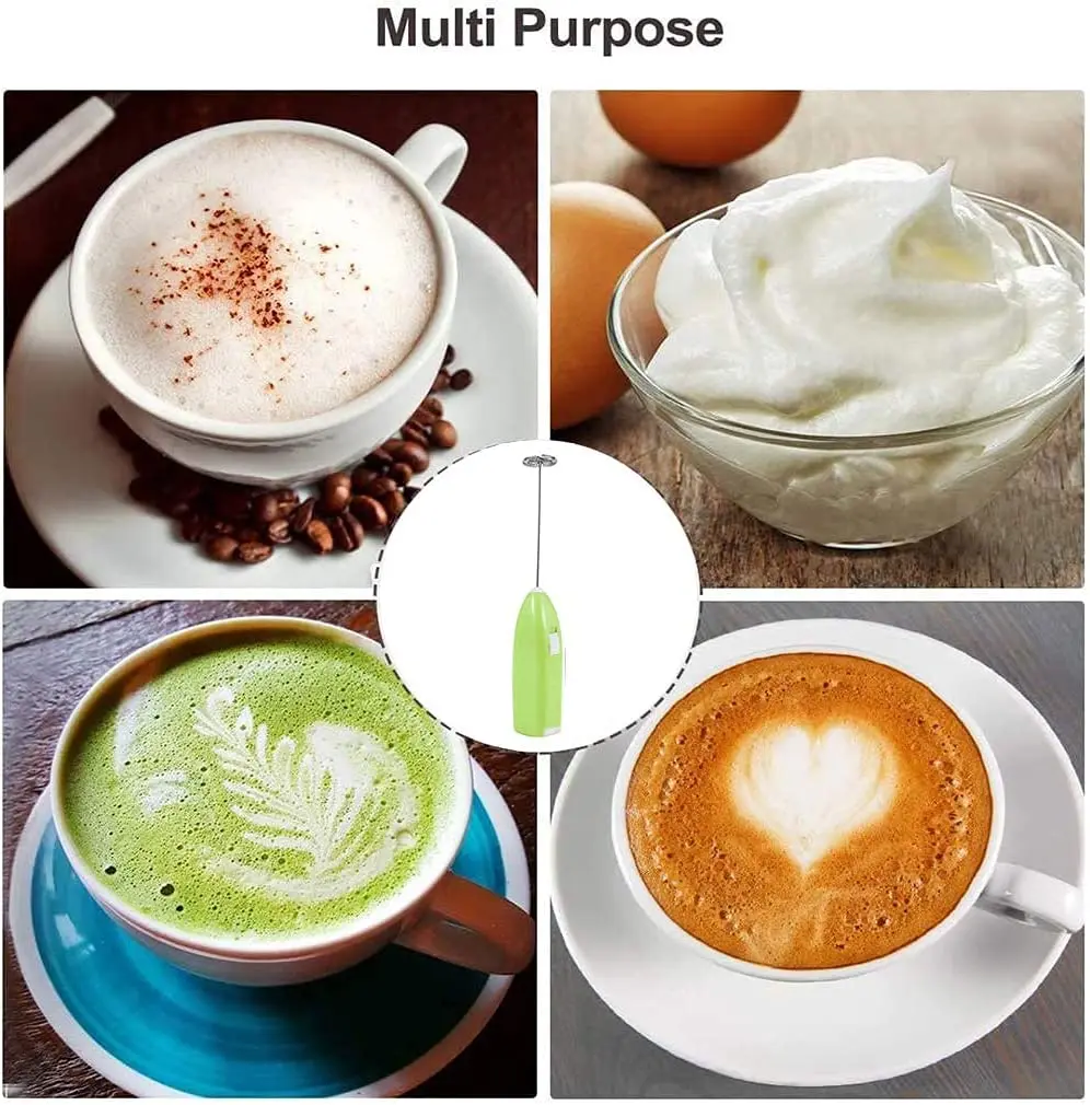 3. Package Includes: In this package includes 5 coffee milk frother with black, green, blue, pink, white colors. Electric mixer handheld simple one-touch switch with a powerful motor but low noise level. Just put electric whisk into a container with liquid food up to approx.