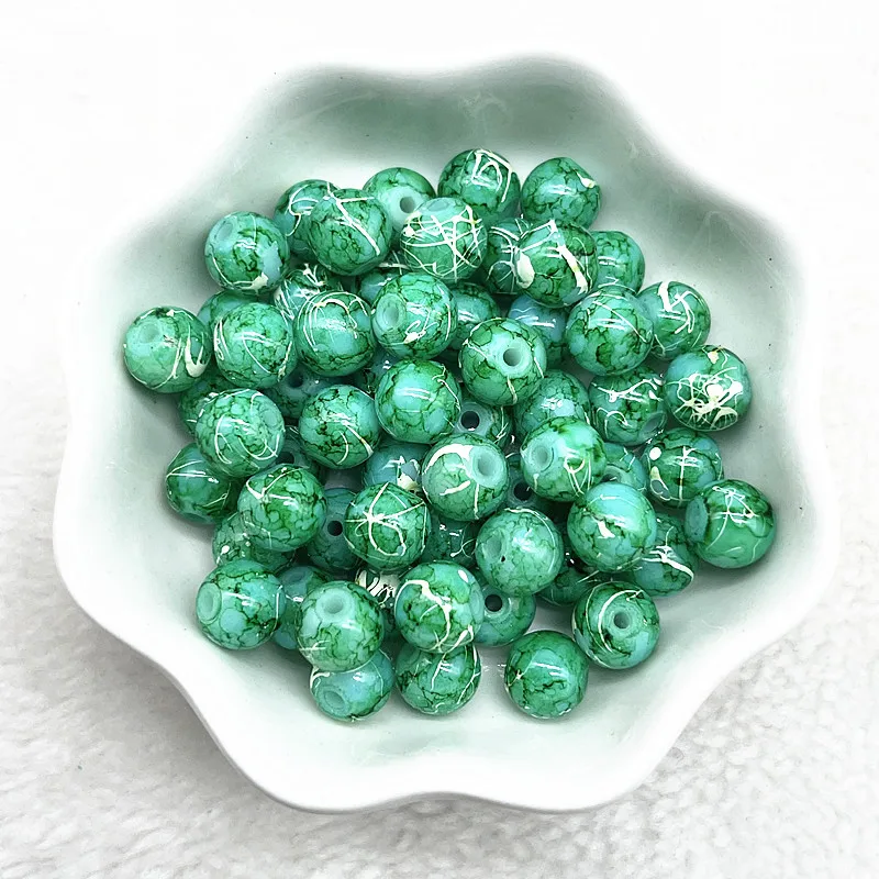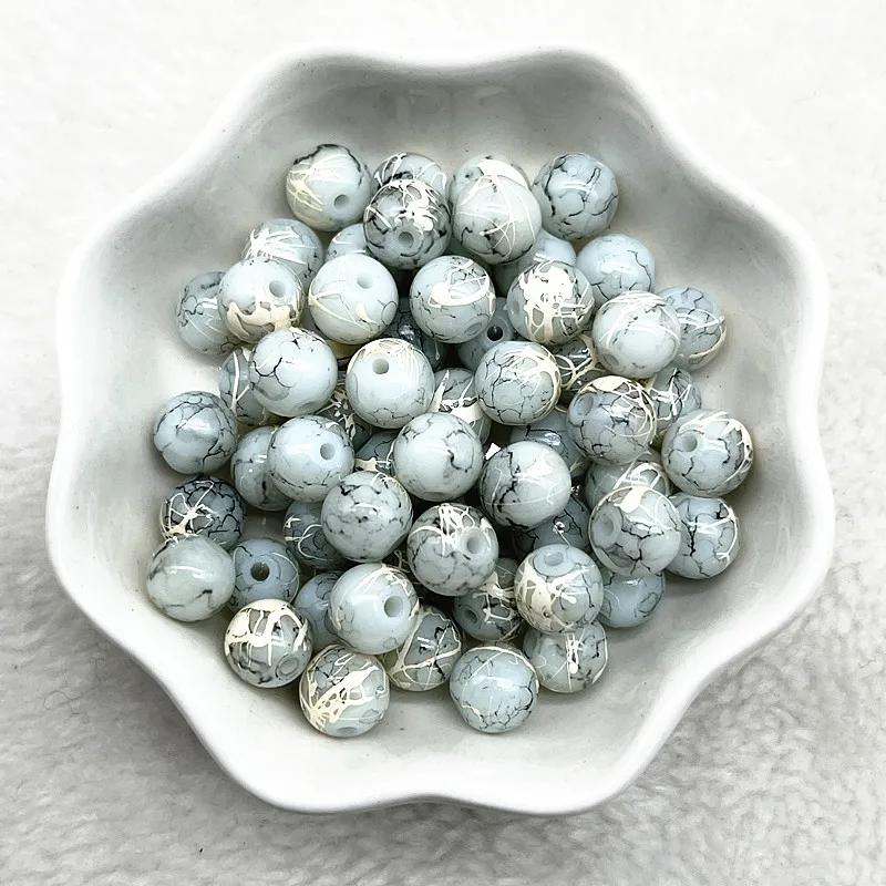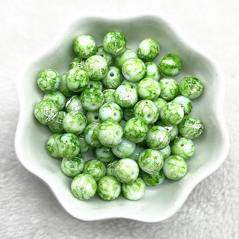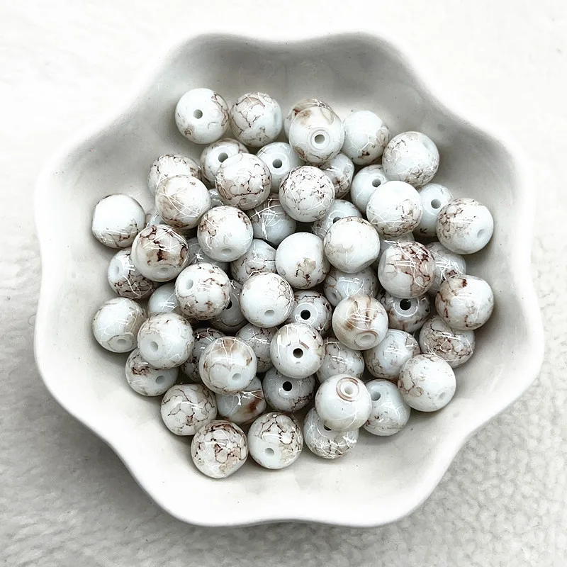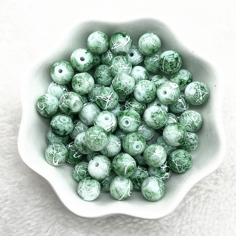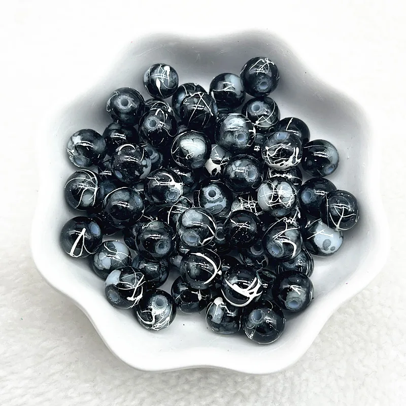 New 4/6/8/10mm Pattern Round Glass Beads Loose Spacer Beads for Jewelry Making DIY Bracelet Necklace Accessories