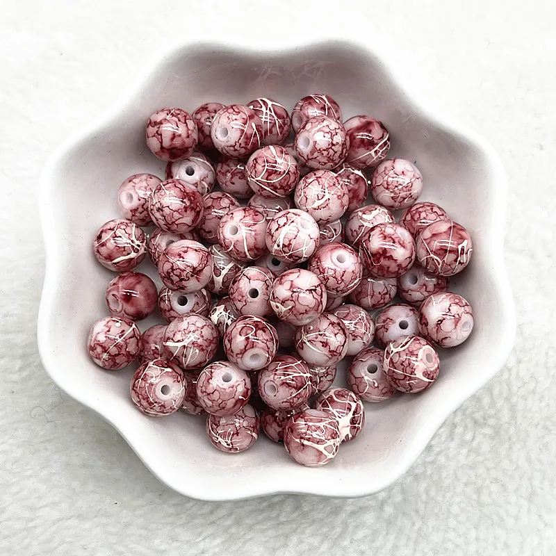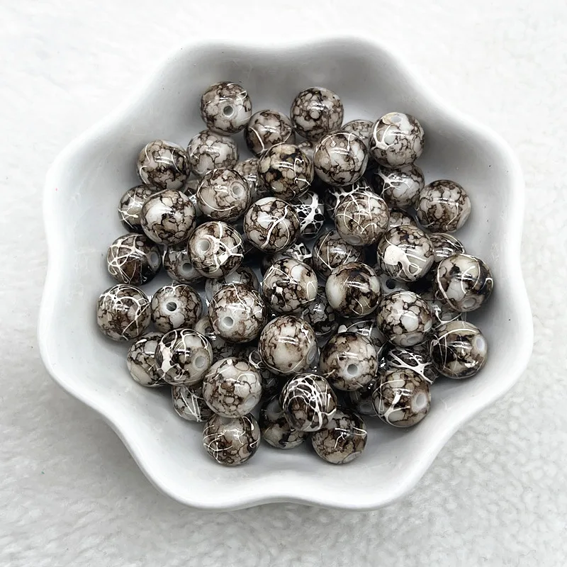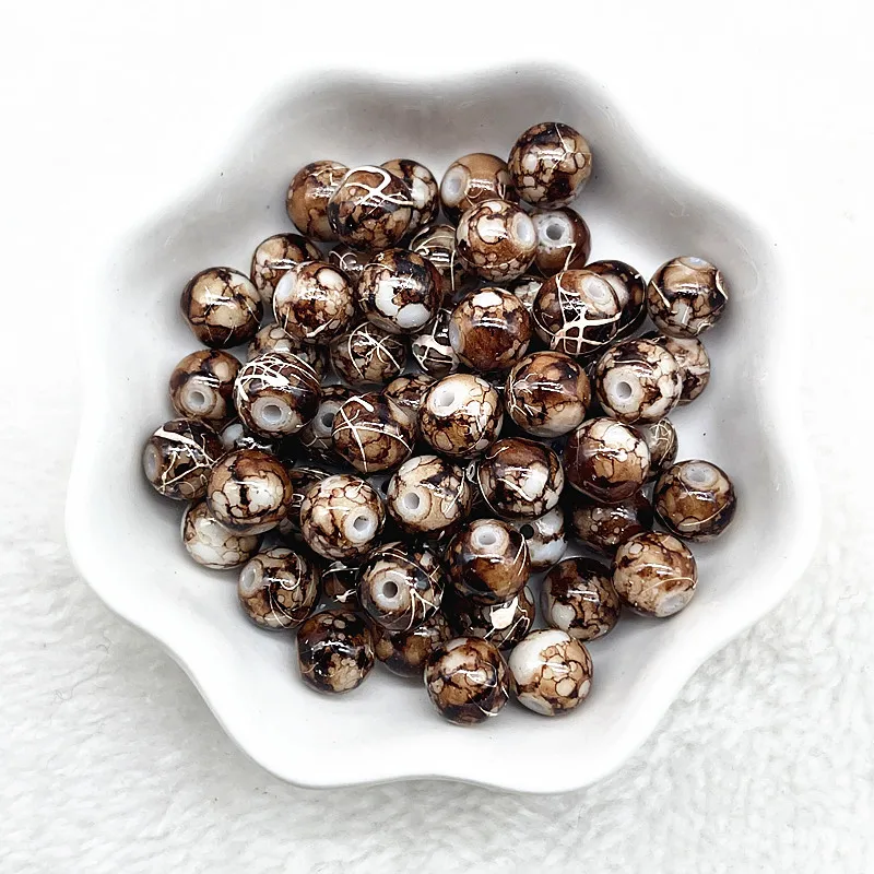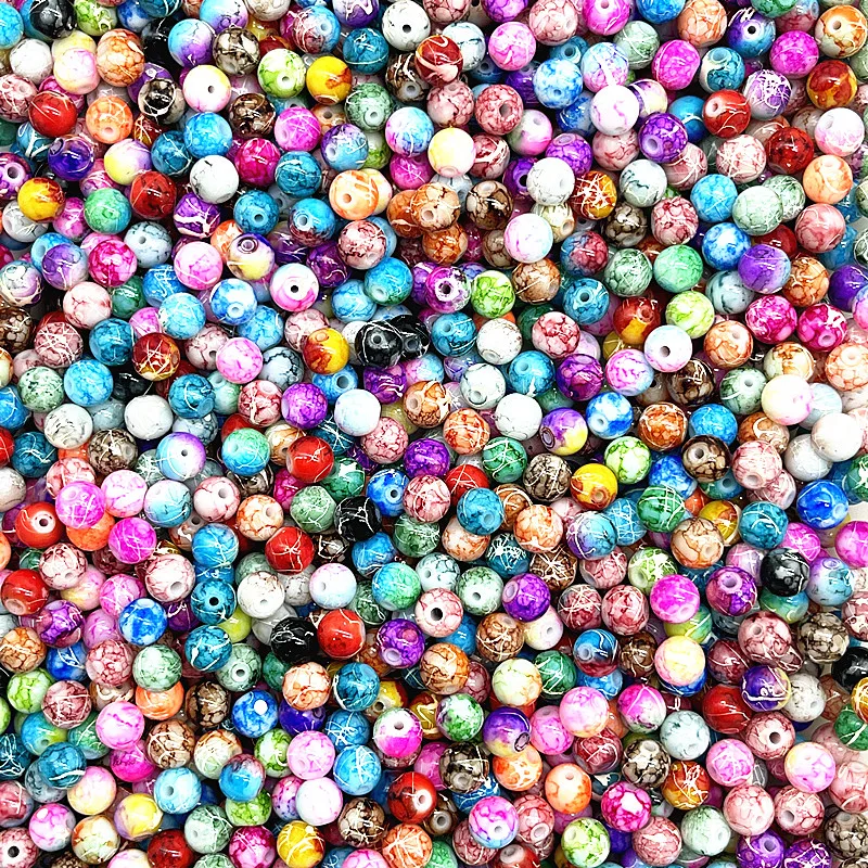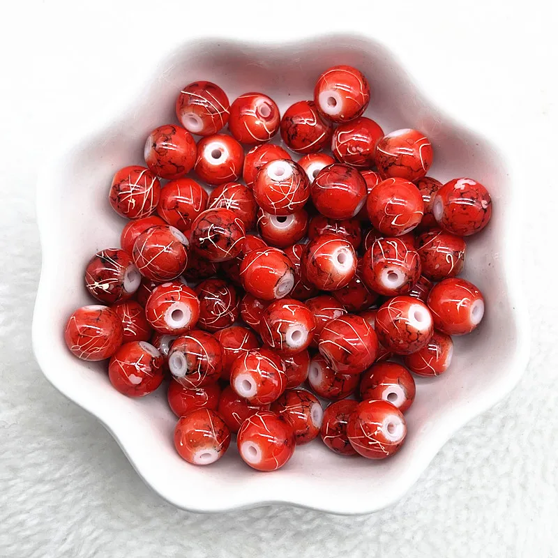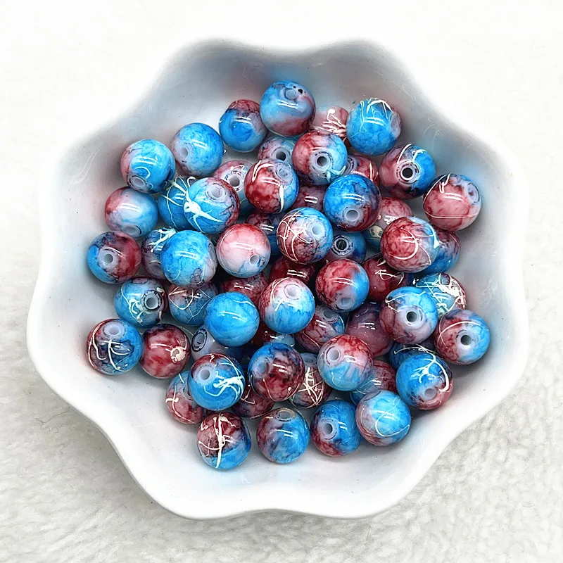 New 4/6/8/10mm Pattern Round Glass Beads Loose Spacer Beads for Jewelry Making DIY Bracelet Necklace Accessories