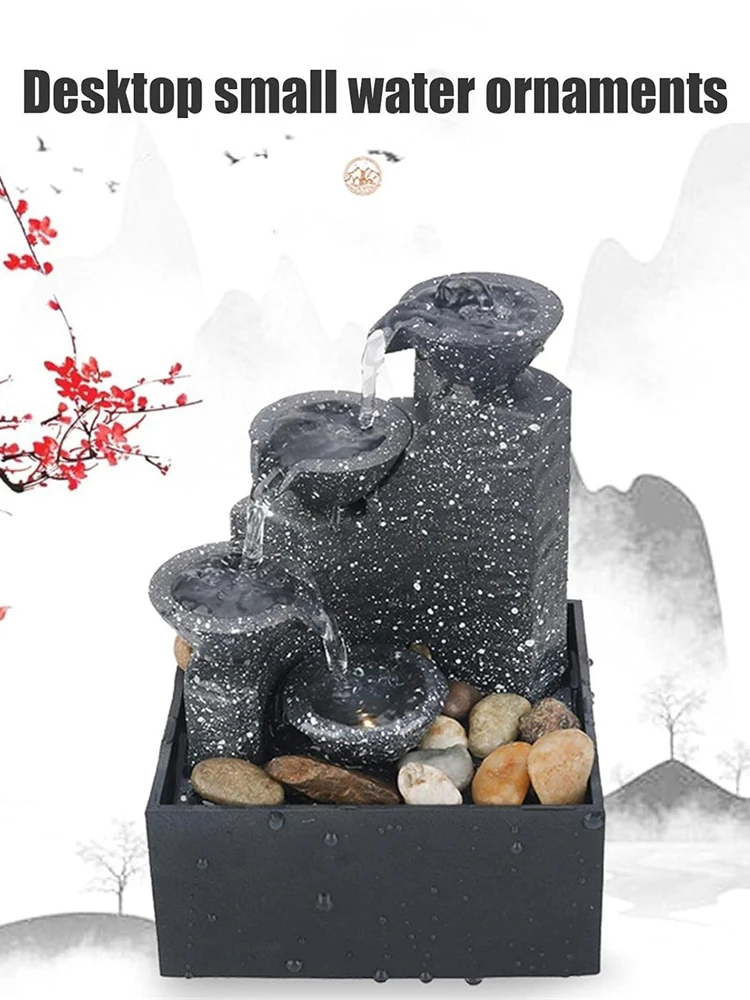 New Tabletop Waterfall Decor Relaxation Meditation Desktop Fountain with Soft Lights Decorative Creative Flowing Water Ornaments