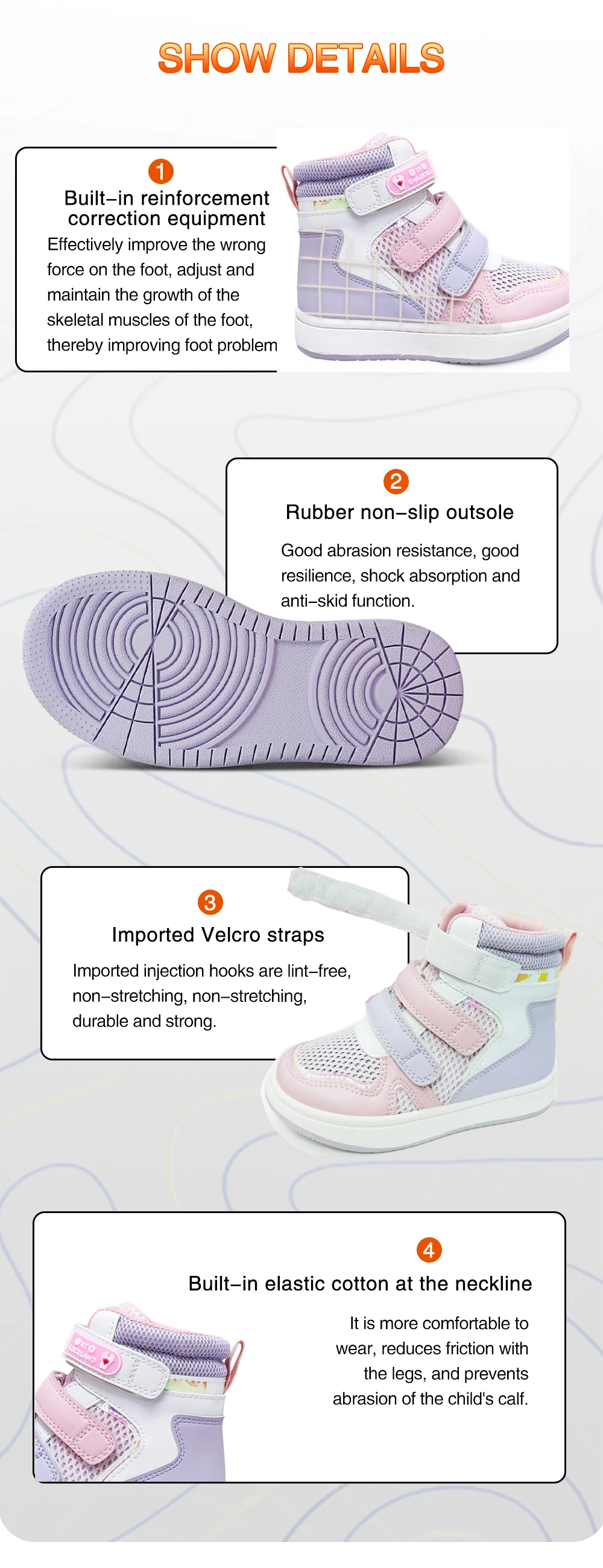 Orthopedic shoes are medical shoes designed to prevent and correct foot pathology, can protect the foot joint and correct the deformation of feet ,to help the healthy growth of children's feet joint.