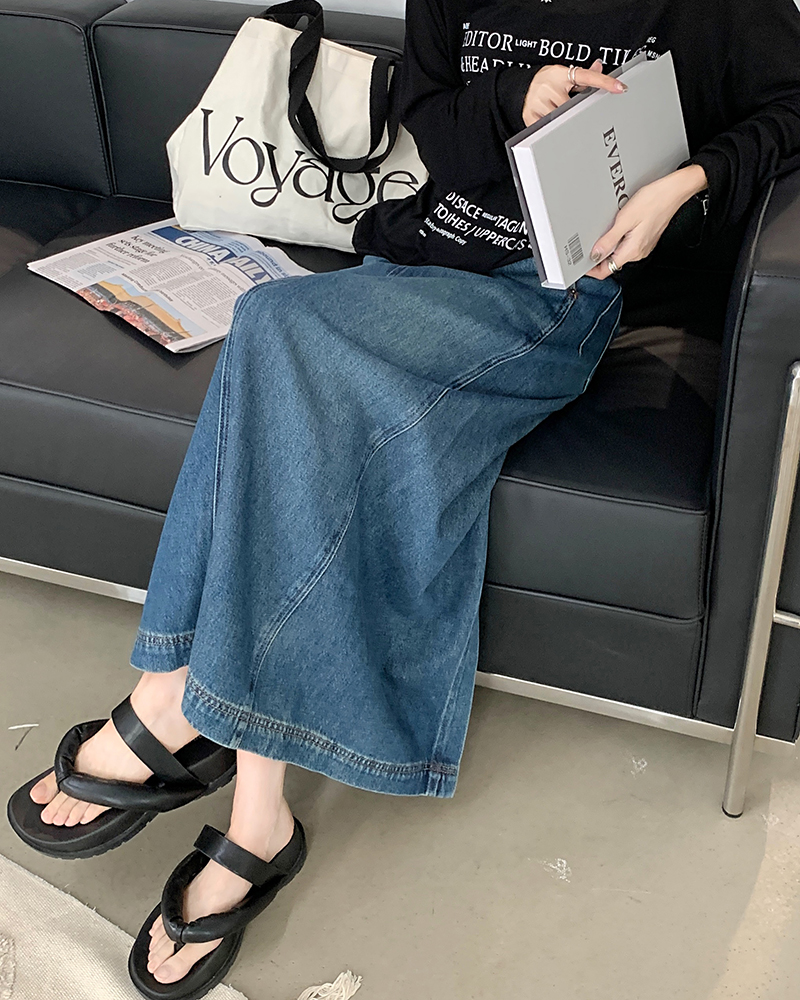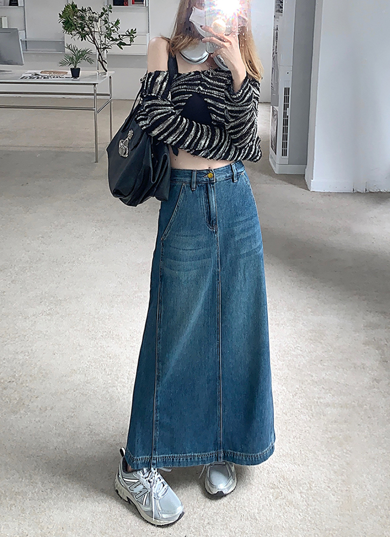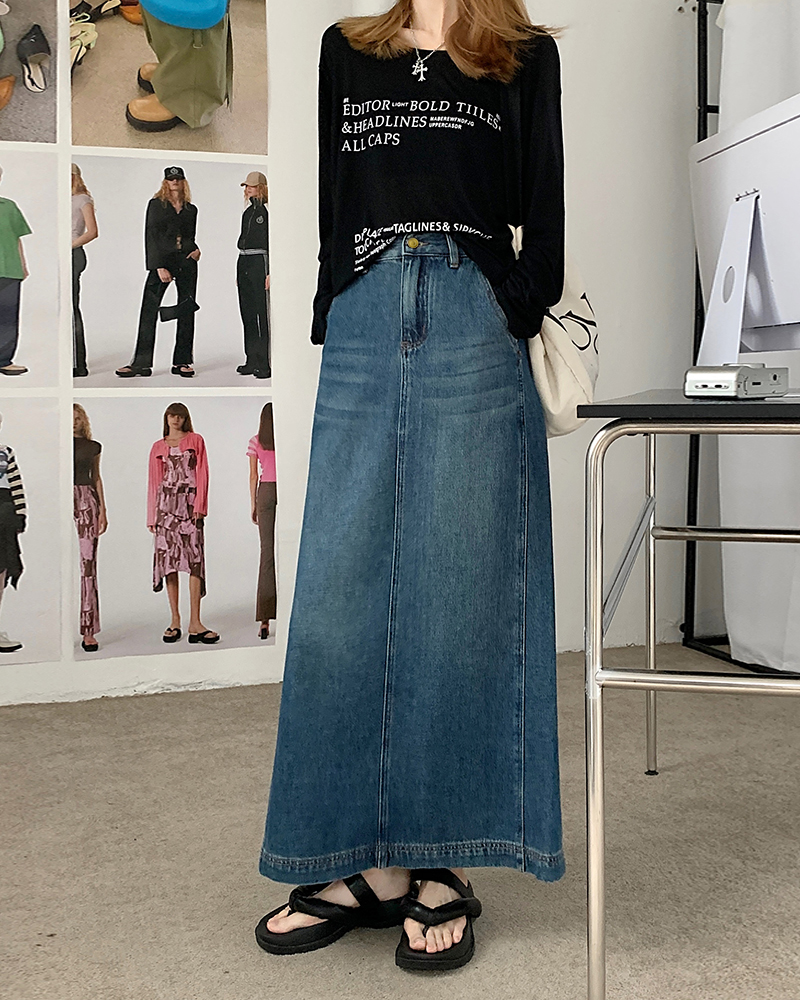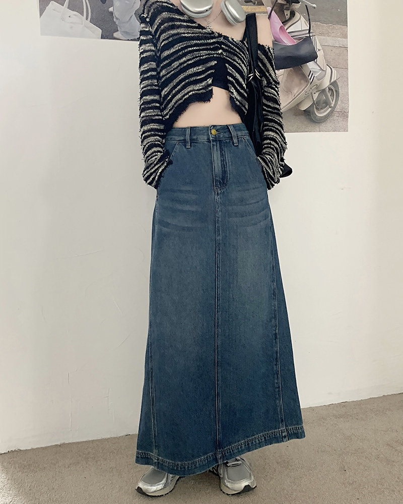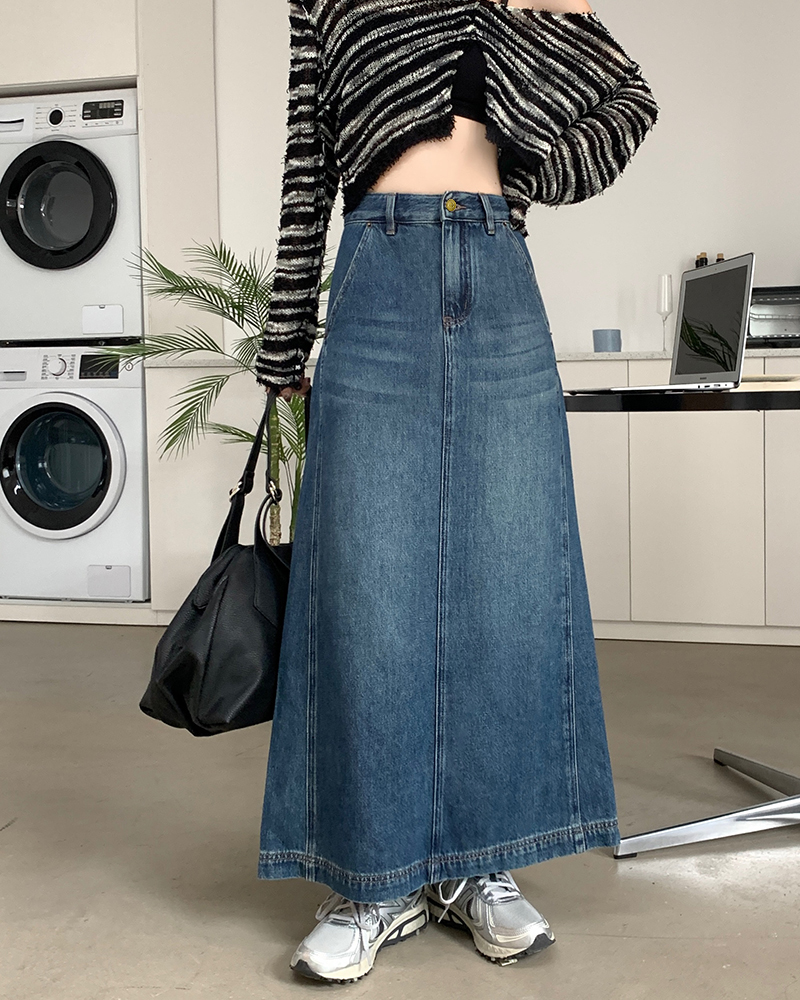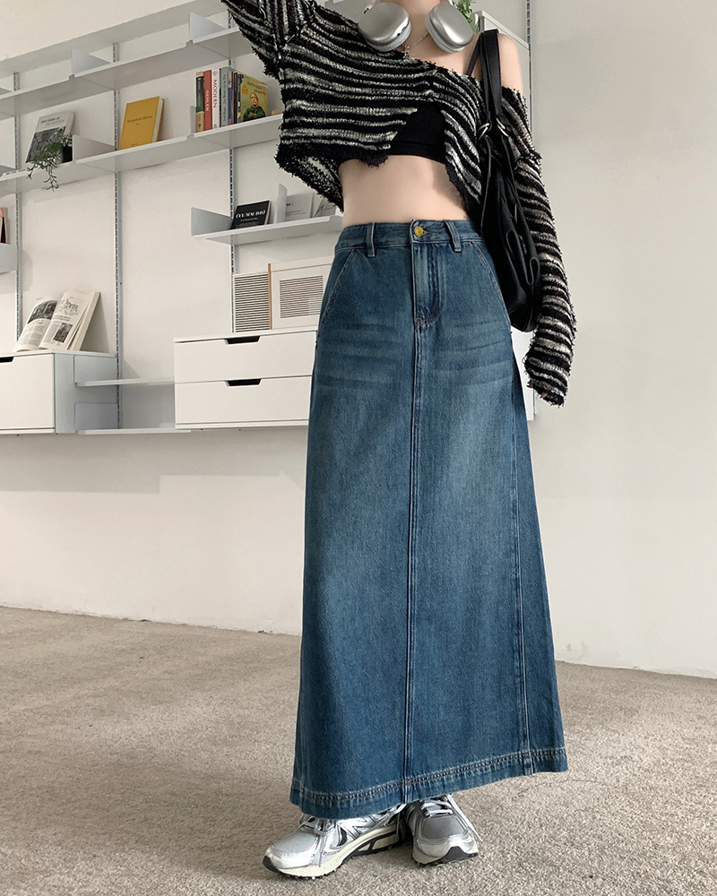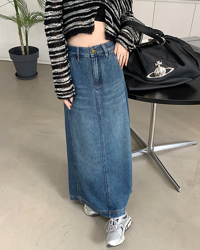 S-XL Long Denim Skirt 2025 korean style High Waist Vintage A Line Split Midi Skirts Women Long Jeans Skirts Style (72993
