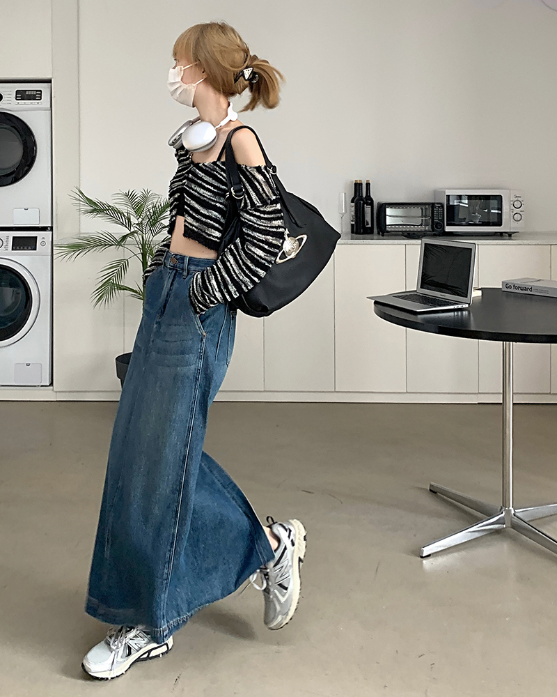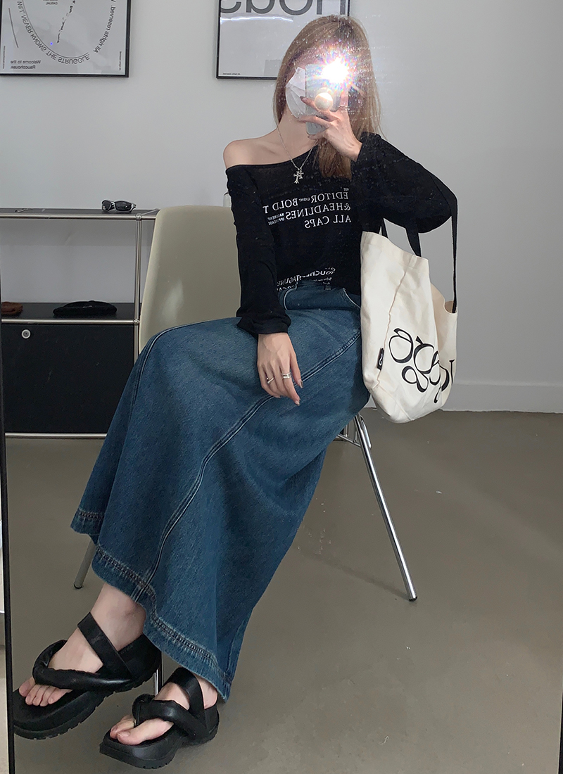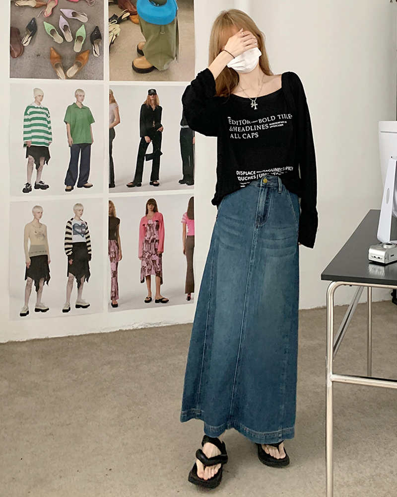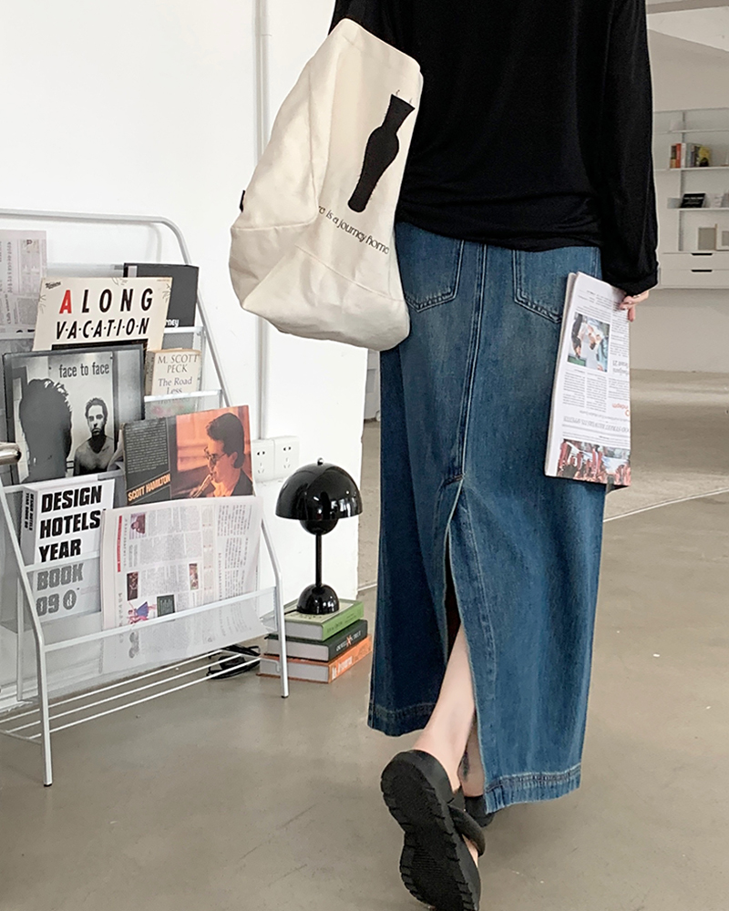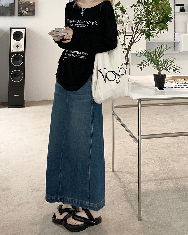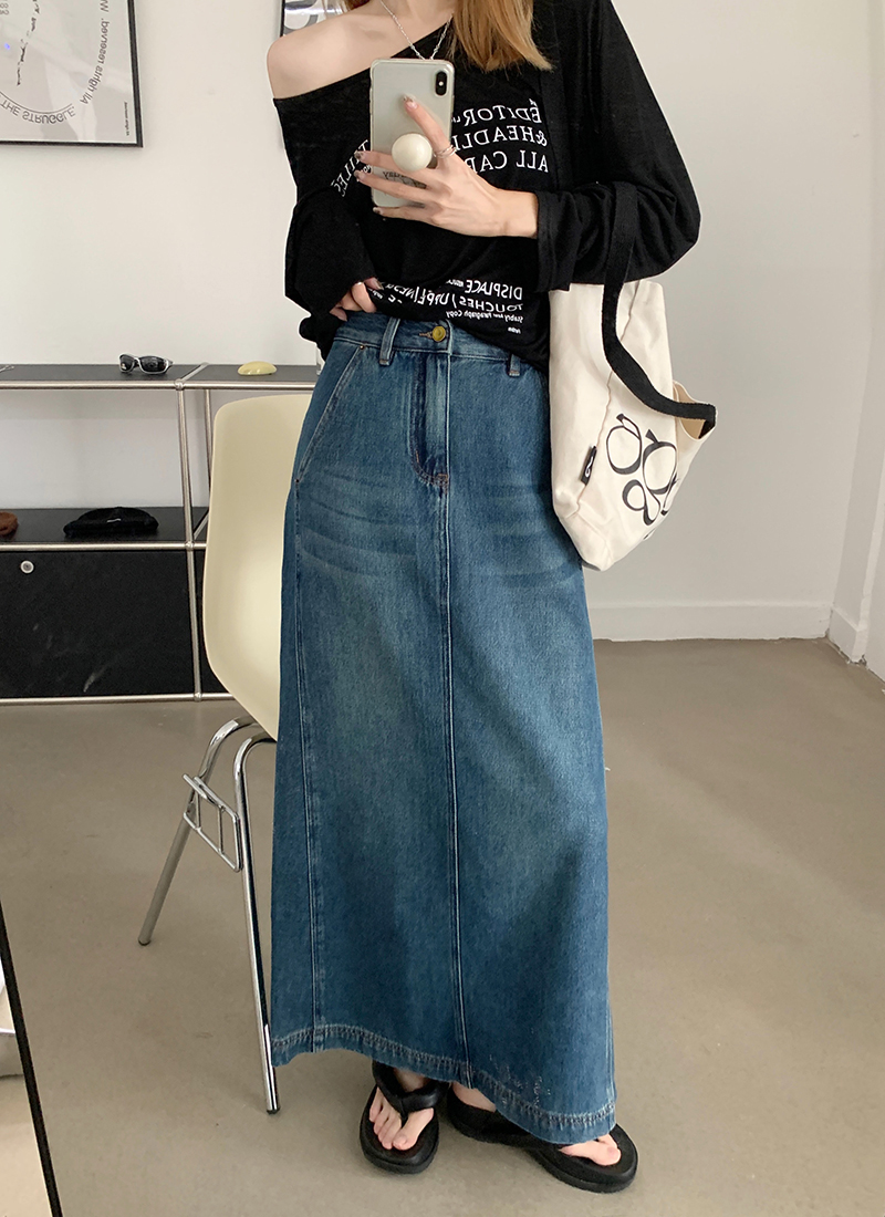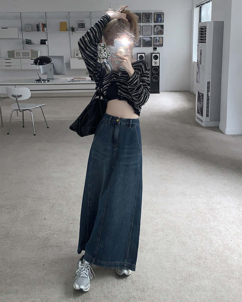 S-XL Long Denim Skirt 2025 korean style High Waist Vintage A Line Split Midi Skirts Women Long Jeans Skirts Style (72993