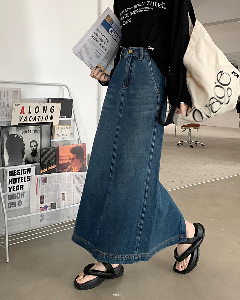 S-XL Long Denim Skirt 2022 korean style High Waist Vintage A Line Split Midi Skirts Women Long Jeans Skirts Style