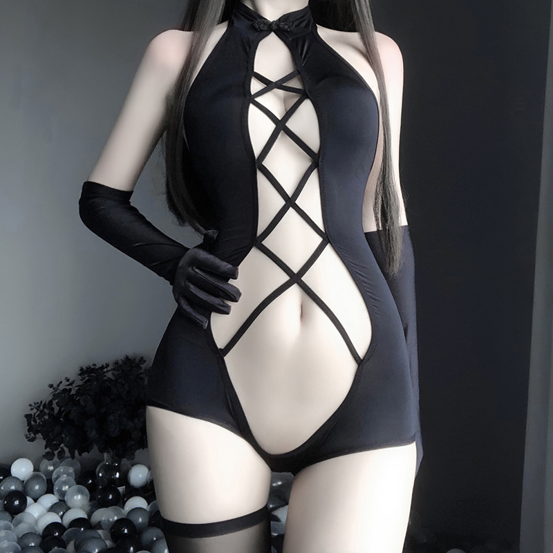 Sexy Lingerie Halter Lace One-piece Mesh Hollow Swimsuit Sexy Anime Lingerie Lolita Cartoon Cosplay Devil Costume