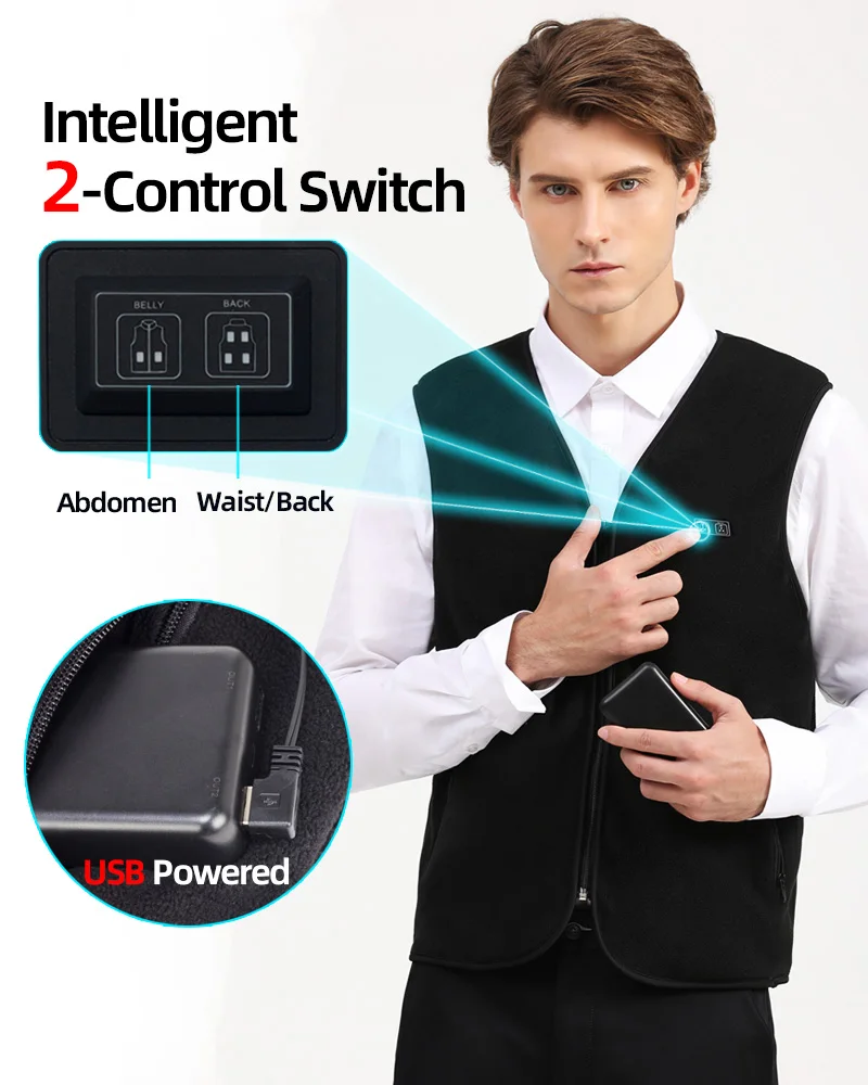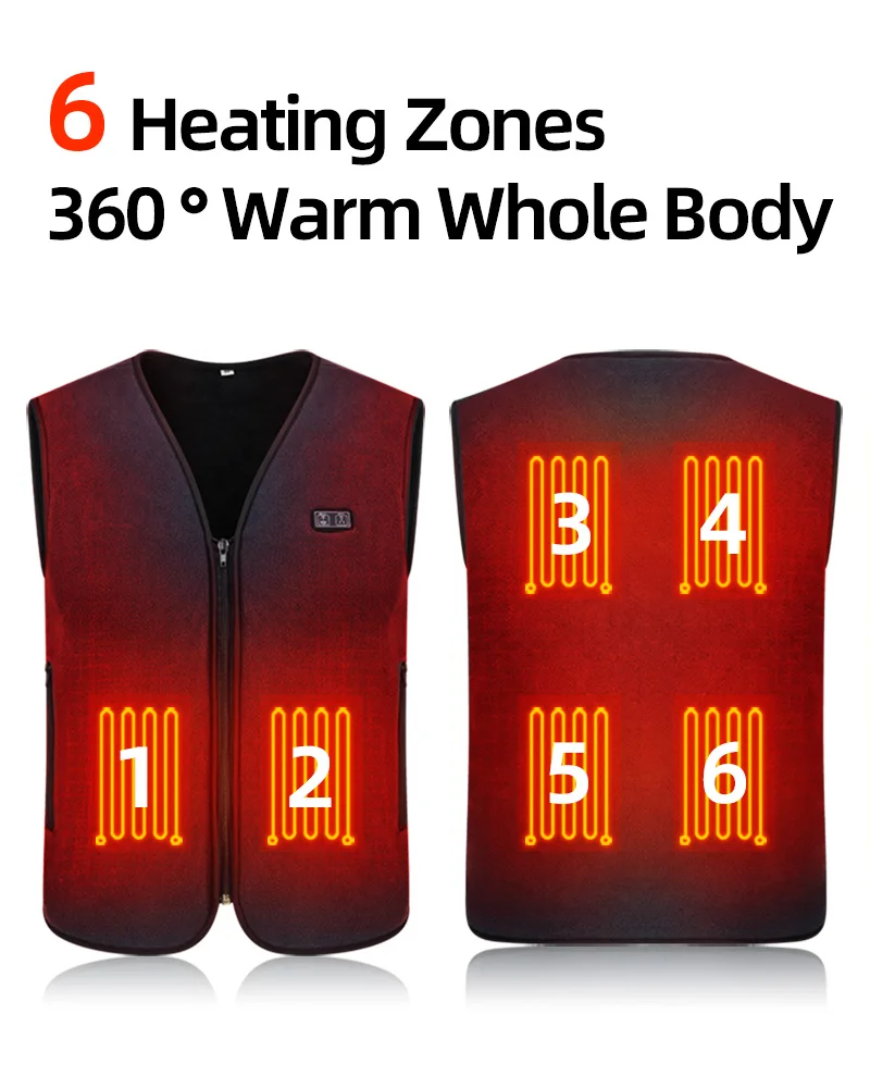 The Vest Is Equipped With 6 Heating Zones, Including The Shoulders (2), Waist (2), And Abdomen (2),